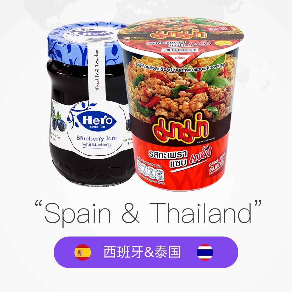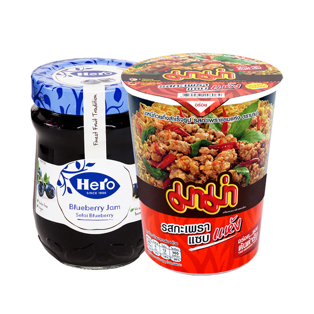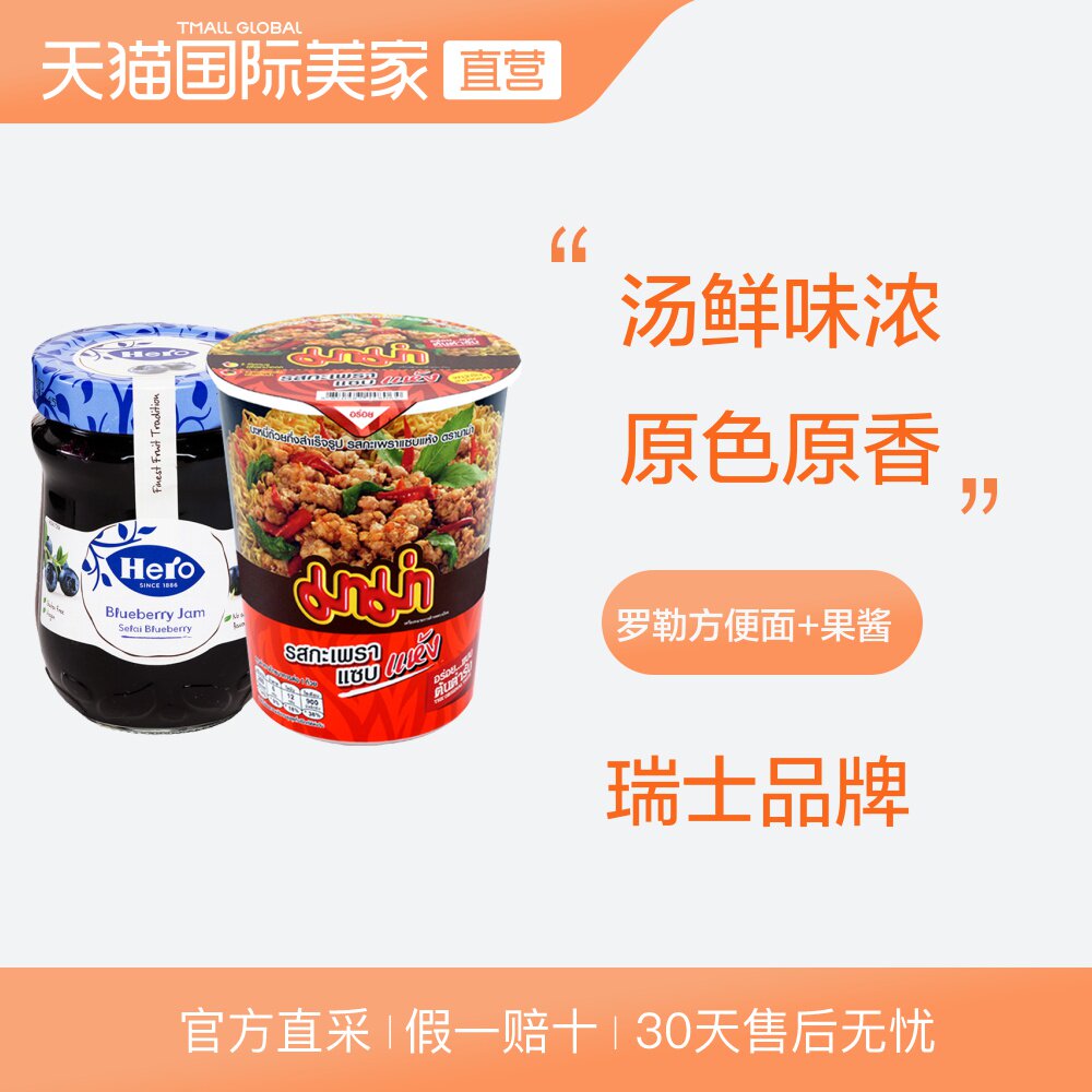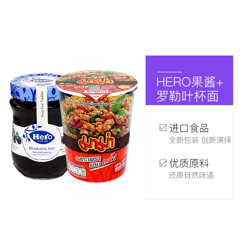 Таиланд импортирован из рубленной чашки вкусового вкуса Royle Leaf, мгновенная лапша 60G+герой герой черничный варенье 340 г/бутылка