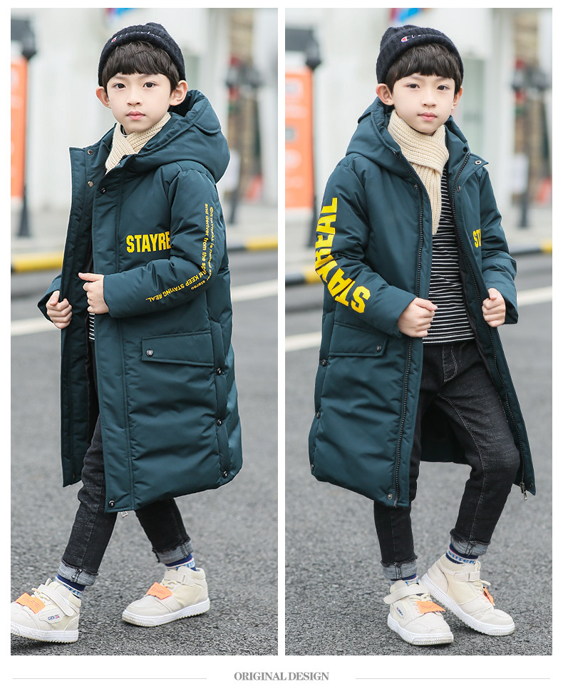 Длинный глянцевый пуховик для мальчиков, плащ, зимняя толстовка с капюшоном, средней длины, в западном стиле