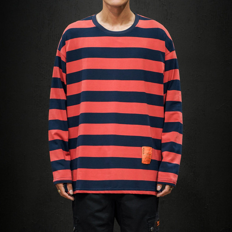 Лонгслив, японская хлопковая футболка с круглым воротником, большой размер, свободный крой