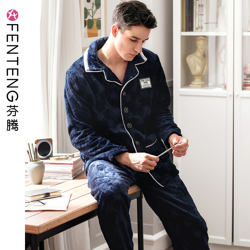 芬腾 Демисезонная коралловая бархатная пижама, утепленный лонгслив, фланелевый комплект, большой размер