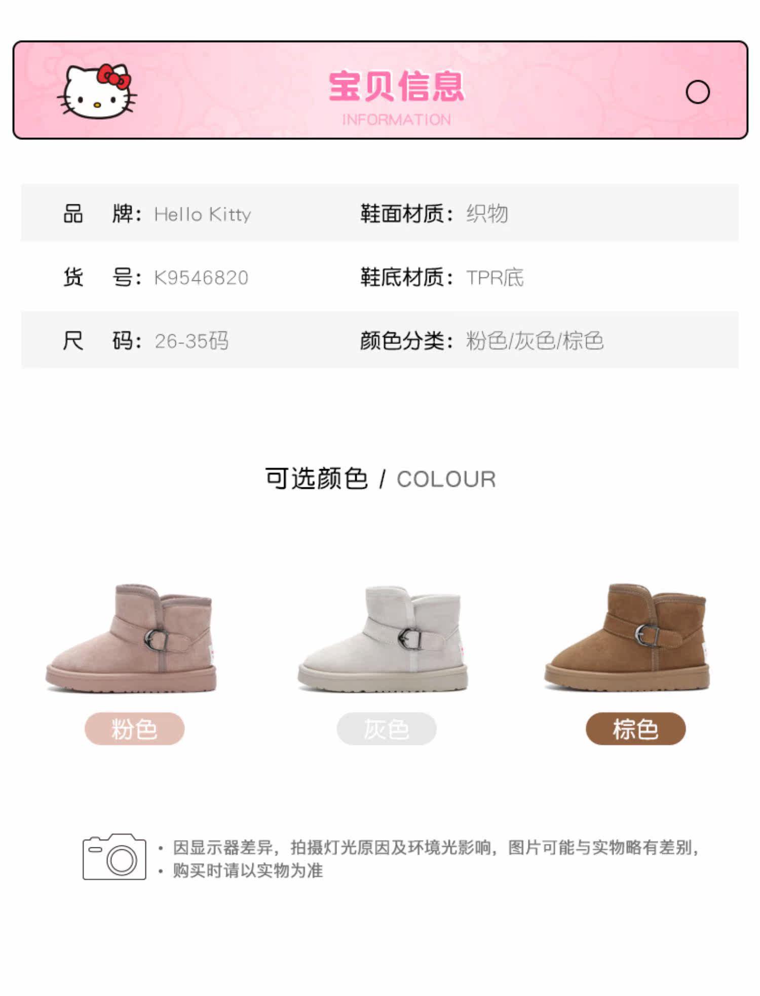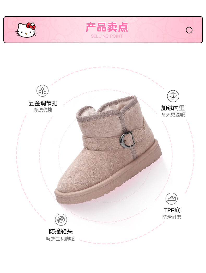 Hello Kitty, нескользящие зимние детские флисовые удерживающие тепло ботинки