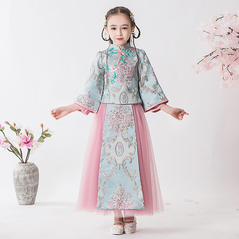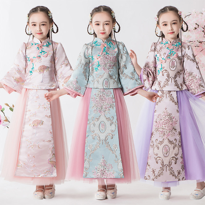 Ханьфу, детское ципао, традиционный свадебный наряд Сюхэ, комплект, элитный лонгслив, китайский стиль