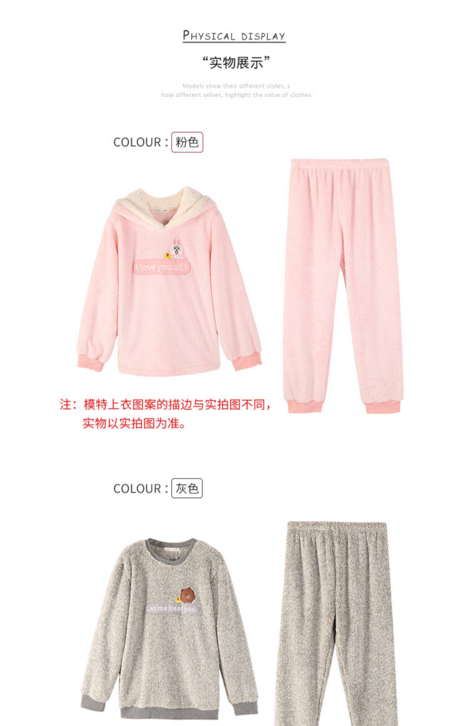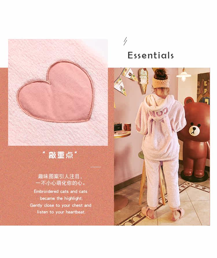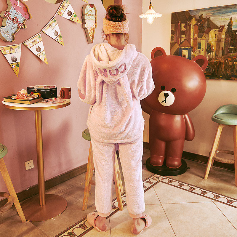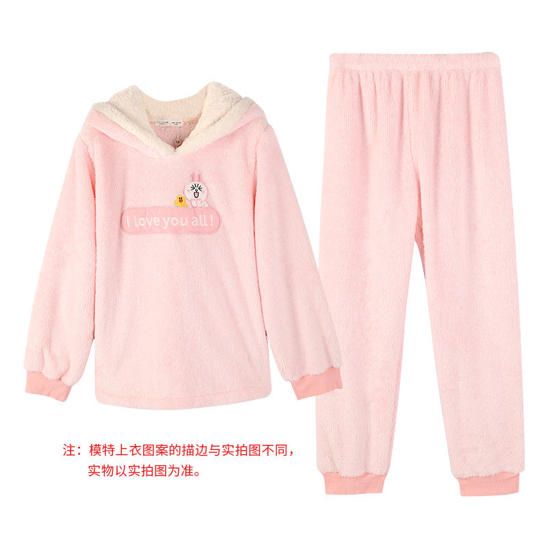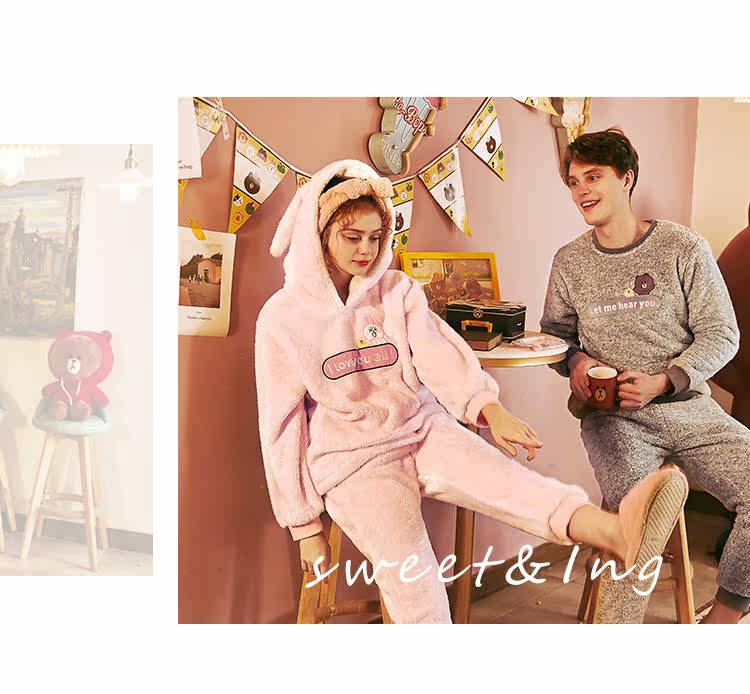 芬腾 Демисезонная коралловая бархатная мультяшная пижама для влюбленных подходит для мужчин и женщин, фланелевый комплект с капюшоном