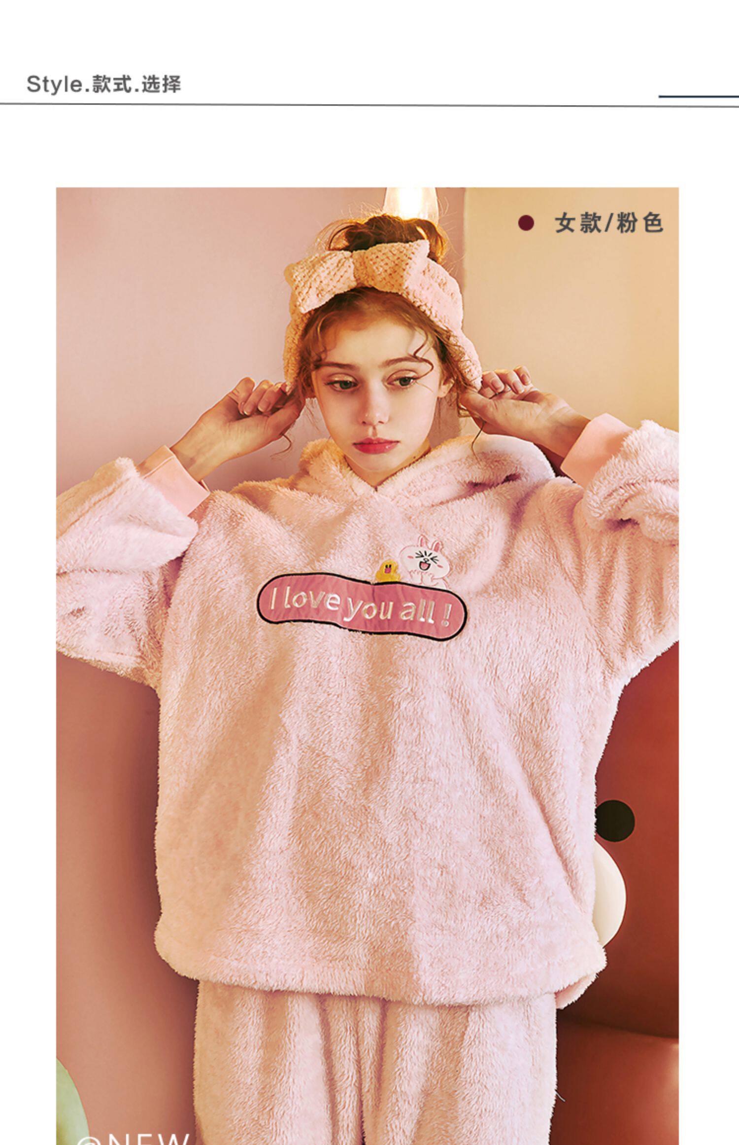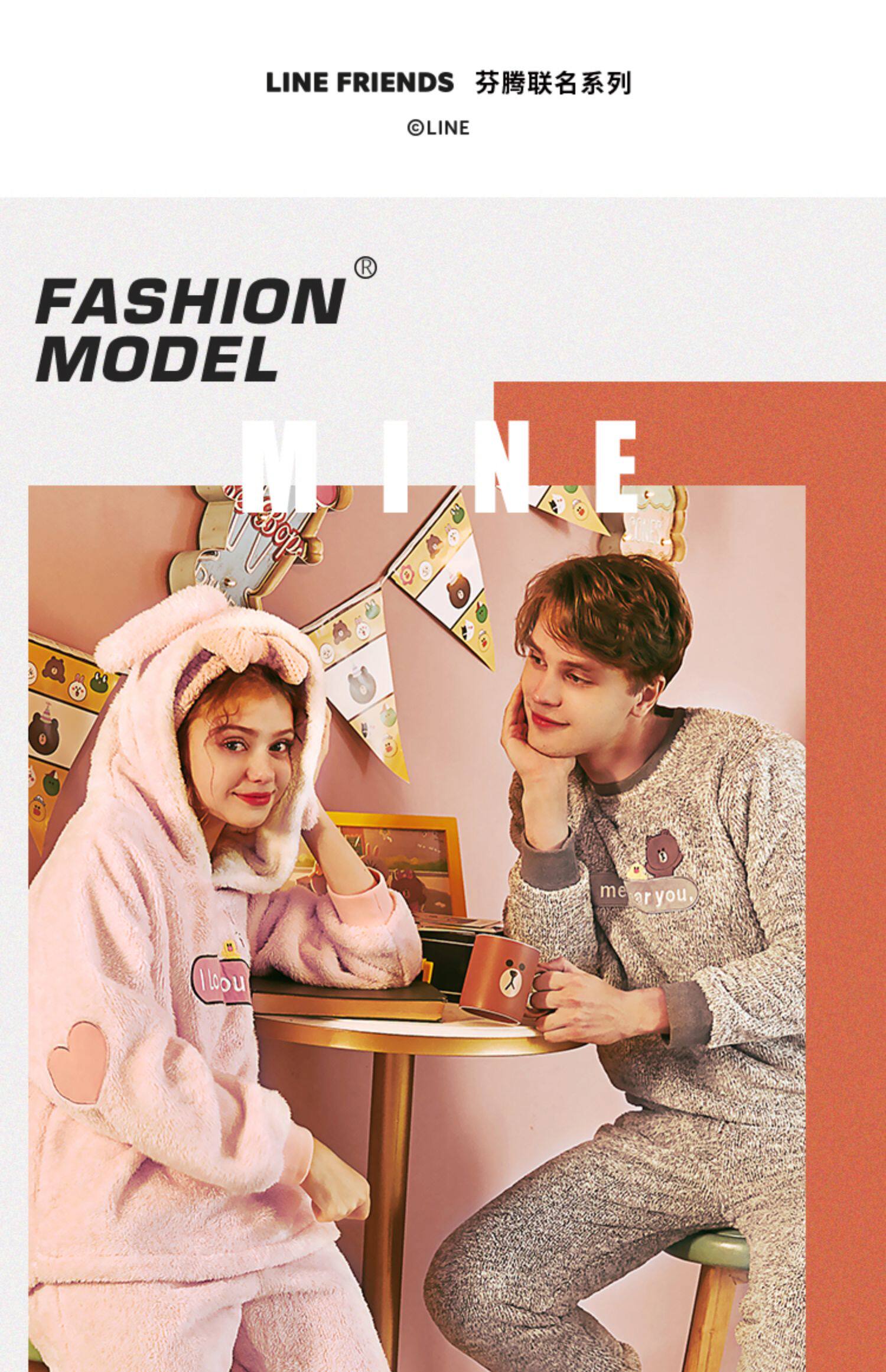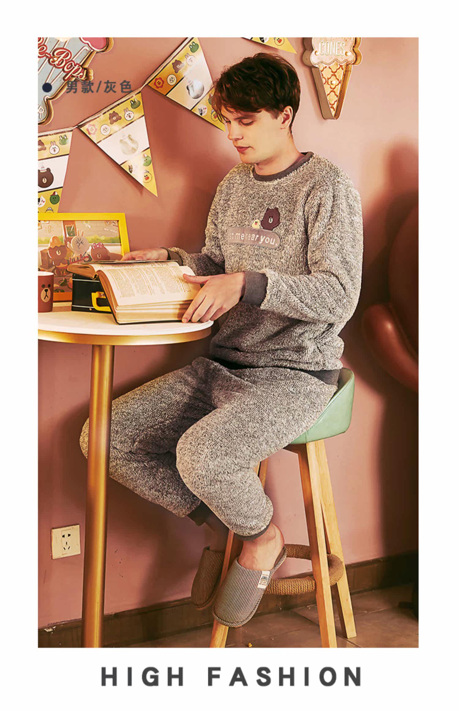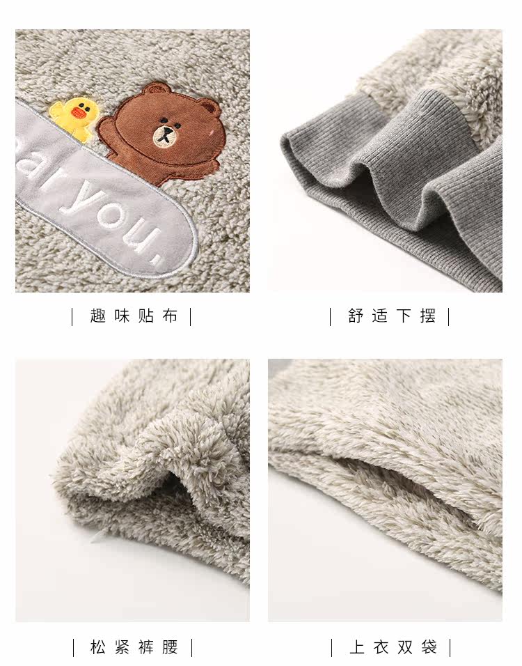芬腾 Демисезонная коралловая бархатная мультяшная пижама для влюбленных подходит для мужчин и женщин, фланелевый комплект с капюшоном