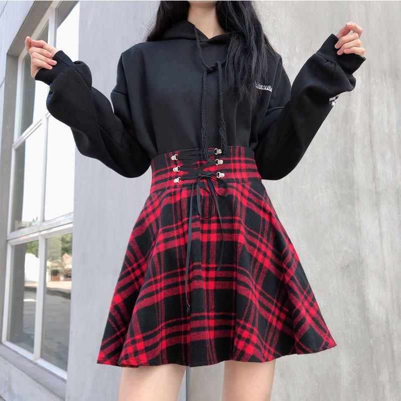 Демисезонная толстовка, юбка в складку, шерстяная приталенная мини-юбка, большой размер, в стиле панк, высокая талия, юбка-пачка