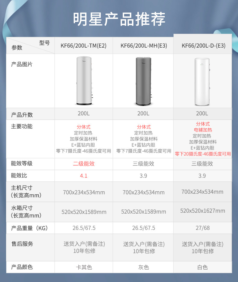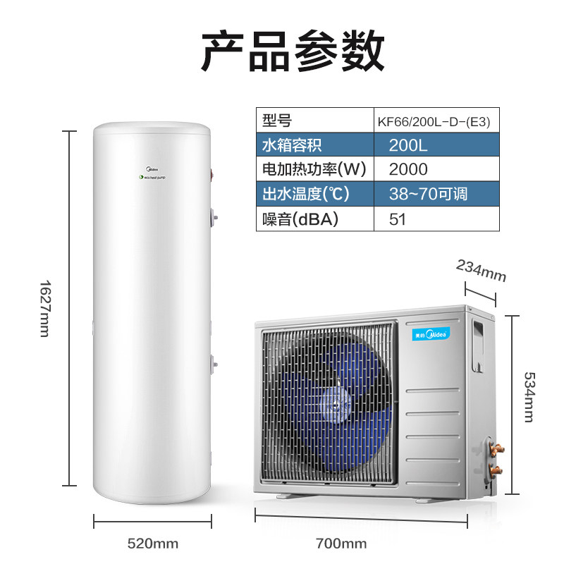 Midea Air Energy Water Aeverter KF66/200L-D- (E3) 200 литров воздушного источника теплового насоса Электроэлектрическое тепло.