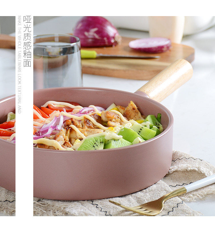 Японская стиль творческая деревянная ручка с фруктами салат миска сплошные цвета миска суп миска керамическая миска для завтрака индивидуальная домохозяйство