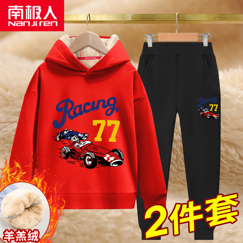 Детская утепленная демисезонная утепленная толстовка для мальчиков, бархатный мужской комплект, подходит для подростков, в западном стиле