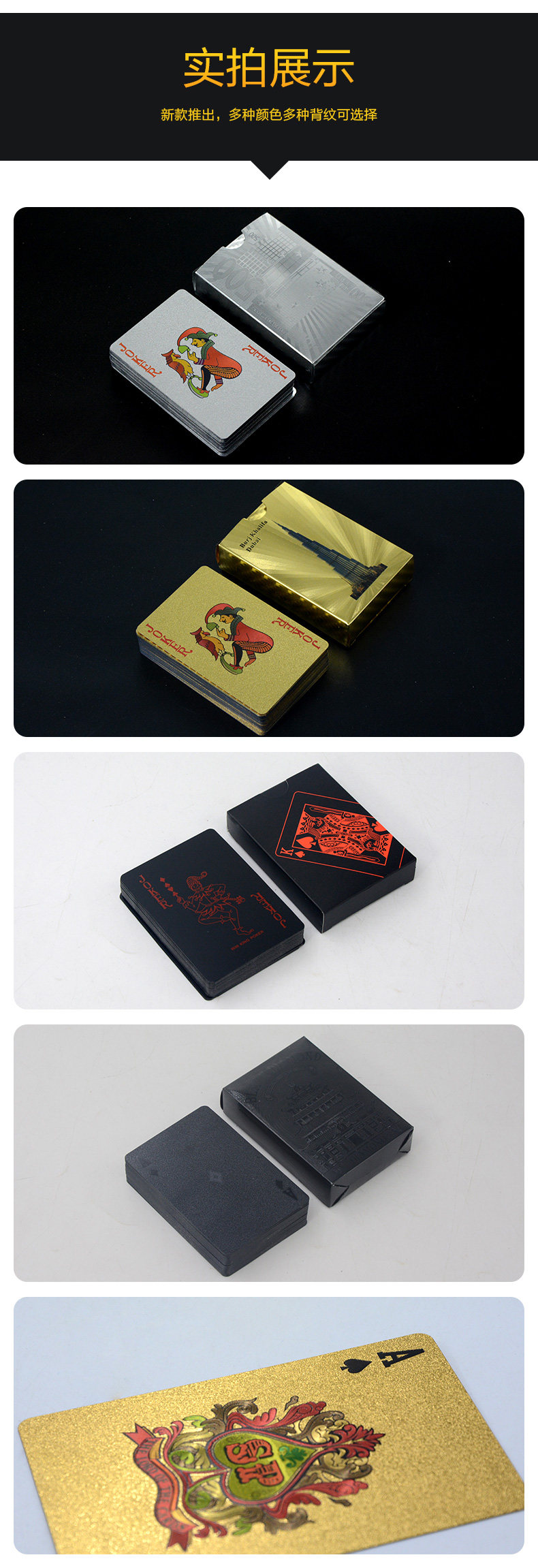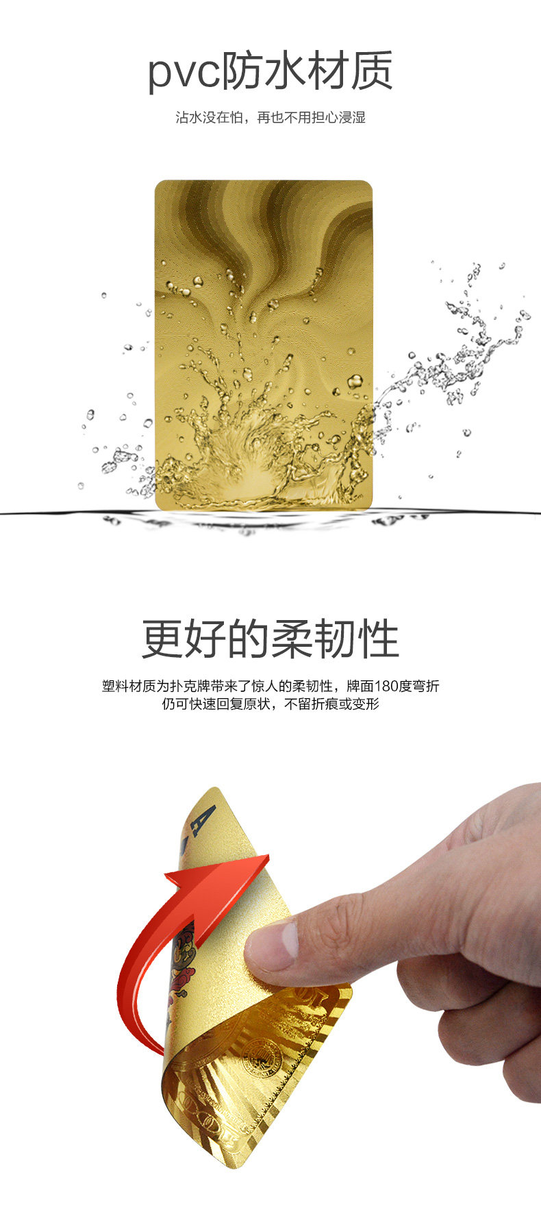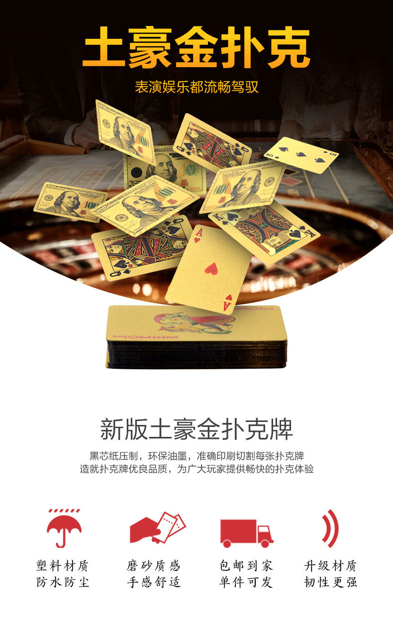Золотые пластиковые водонепроницаемые металлические игральные карты из ПВХ