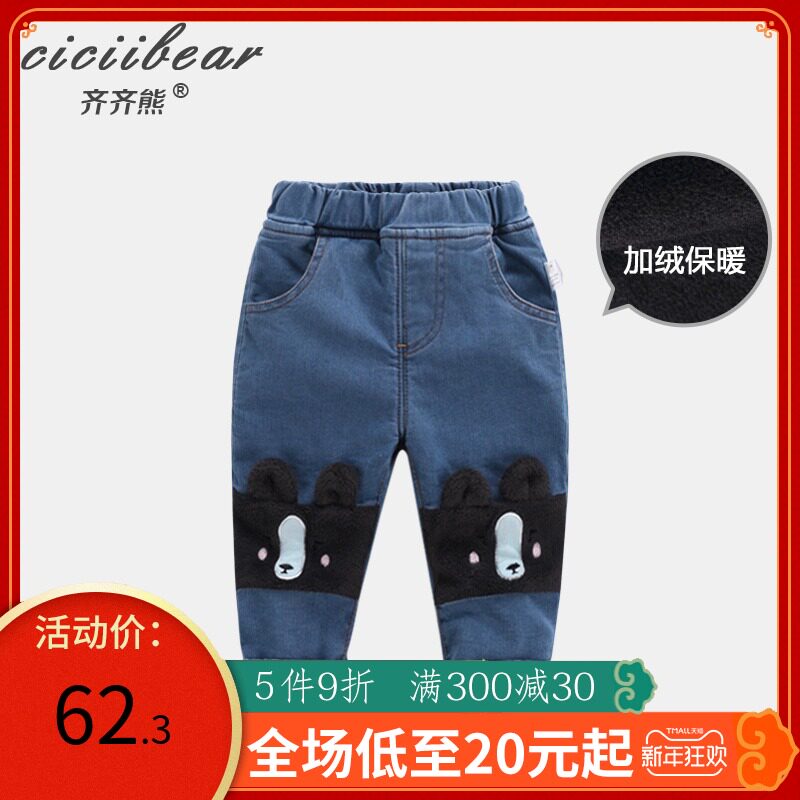 Бархатные удерживающие тепло детские штаны для мальчиков, демисезонные джинсы для выхода на улицу