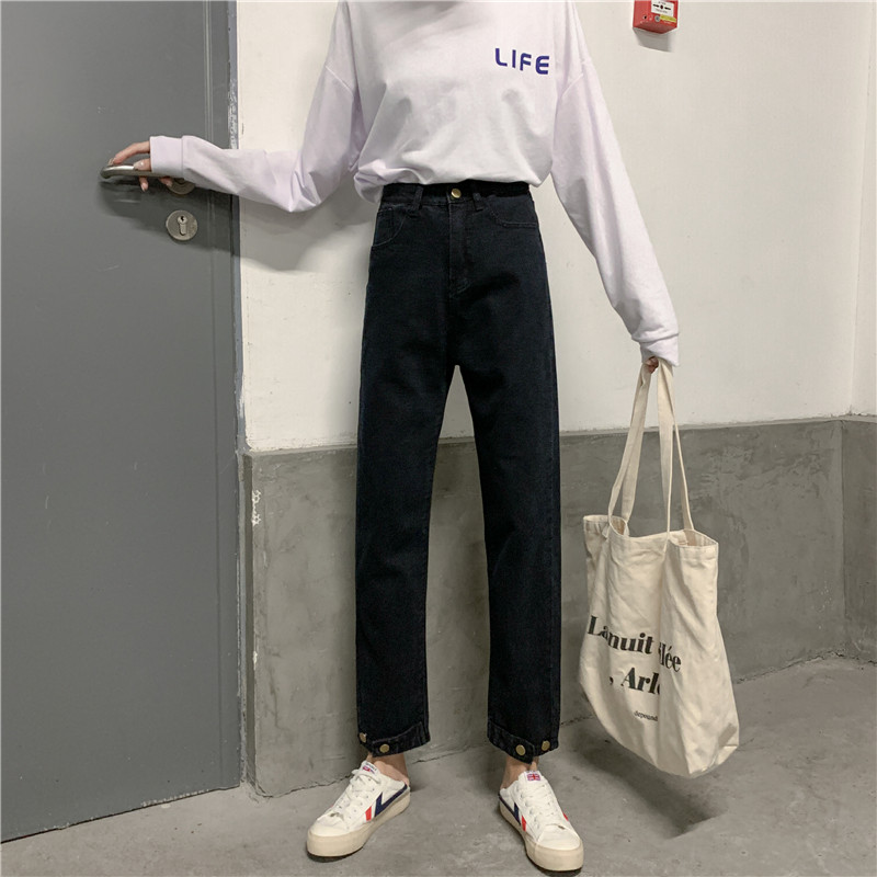 Осенние джинсы, штаны, леггинсы, высокая талия, большой размер, свободный прямой крой