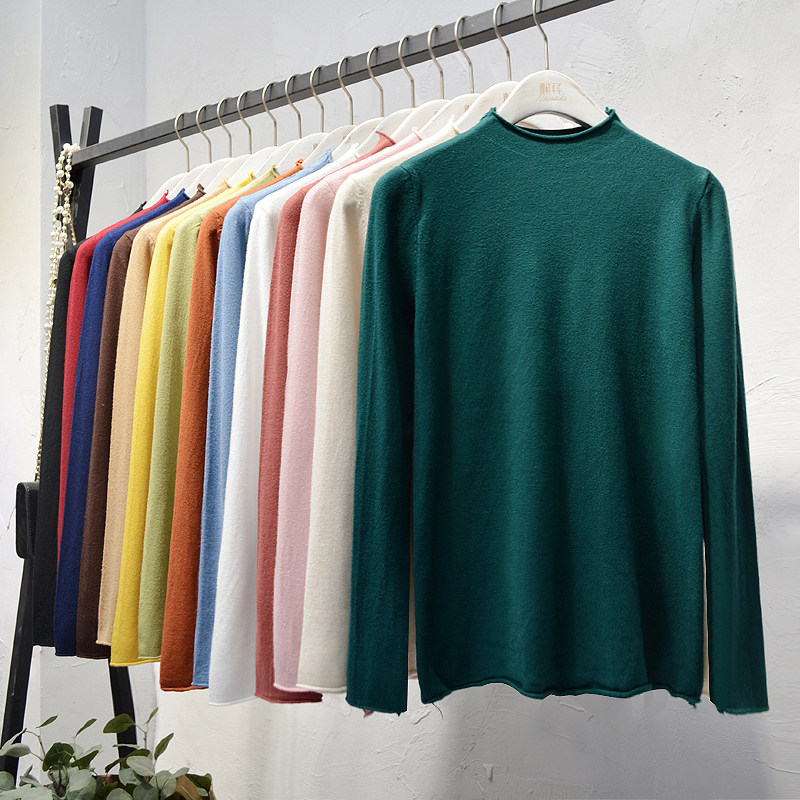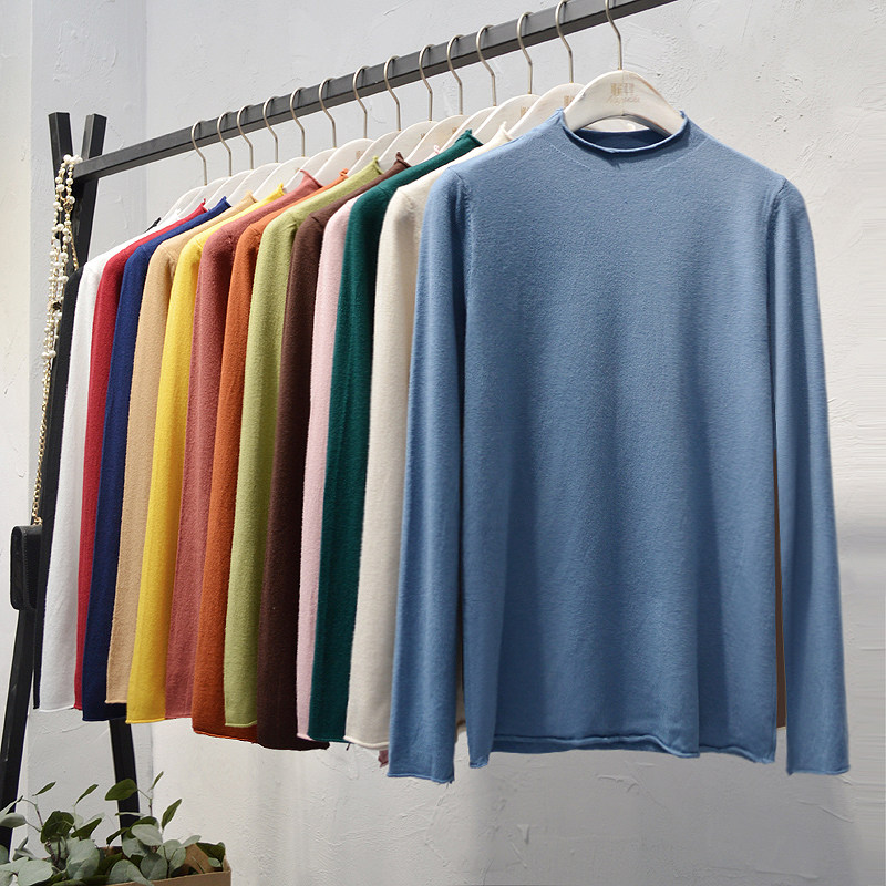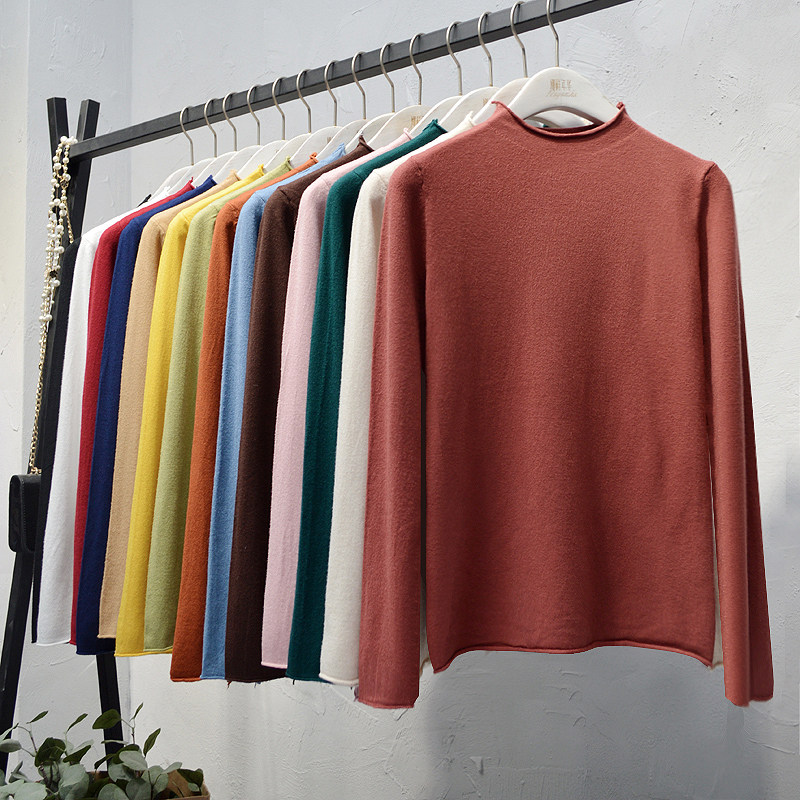 Трикотажный свитер, демисезонный шерстяной базовый лонгслив, в корейском стиле, увеличенная толщина, облегающий крой