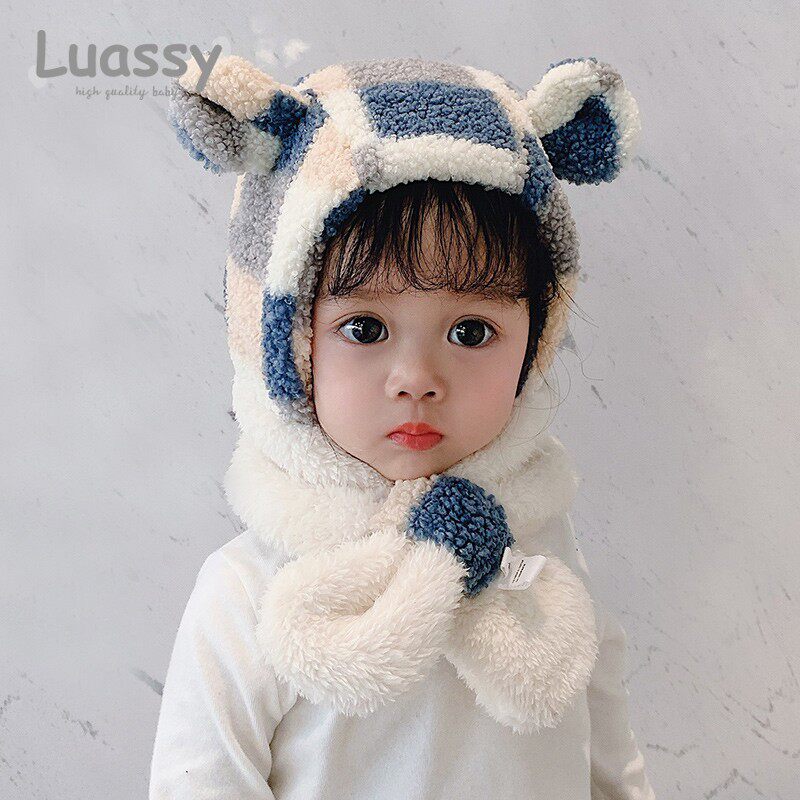 Детская зимняя шапка для мальчиков, детский милый шарф