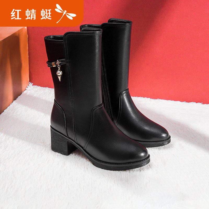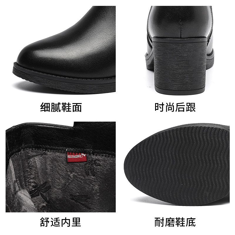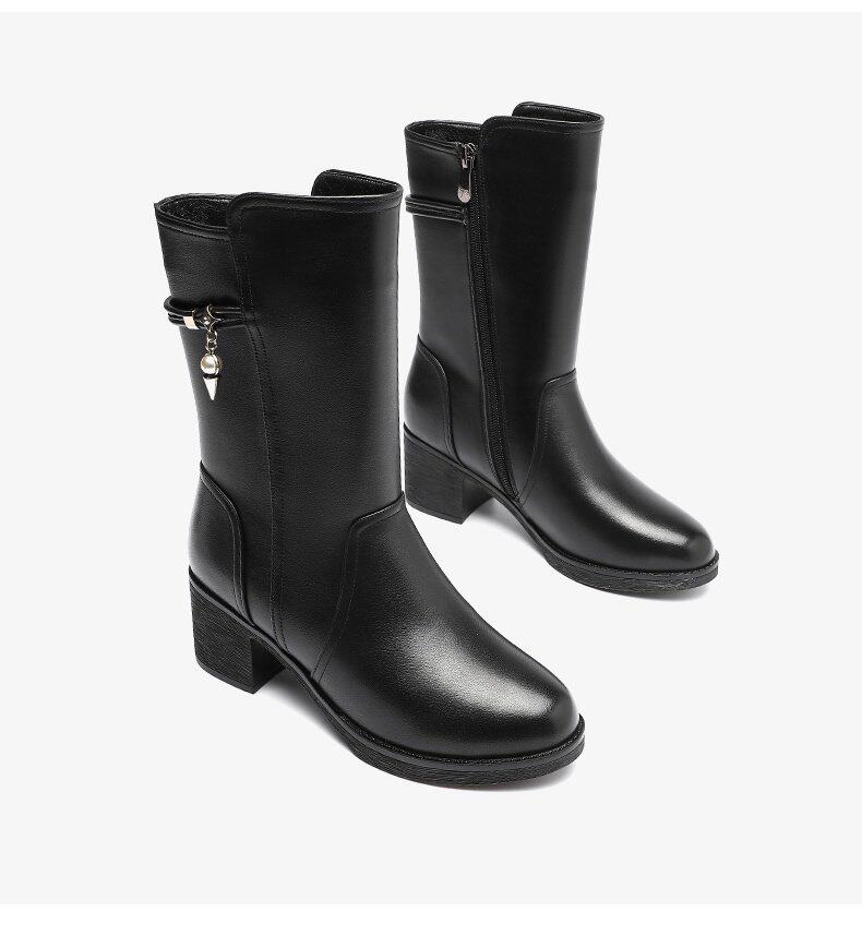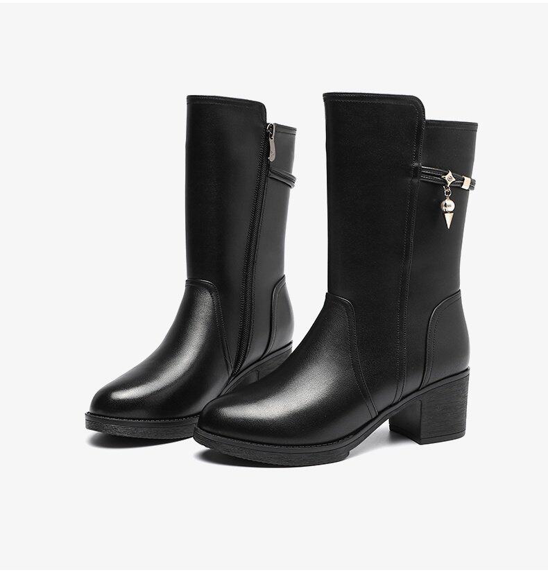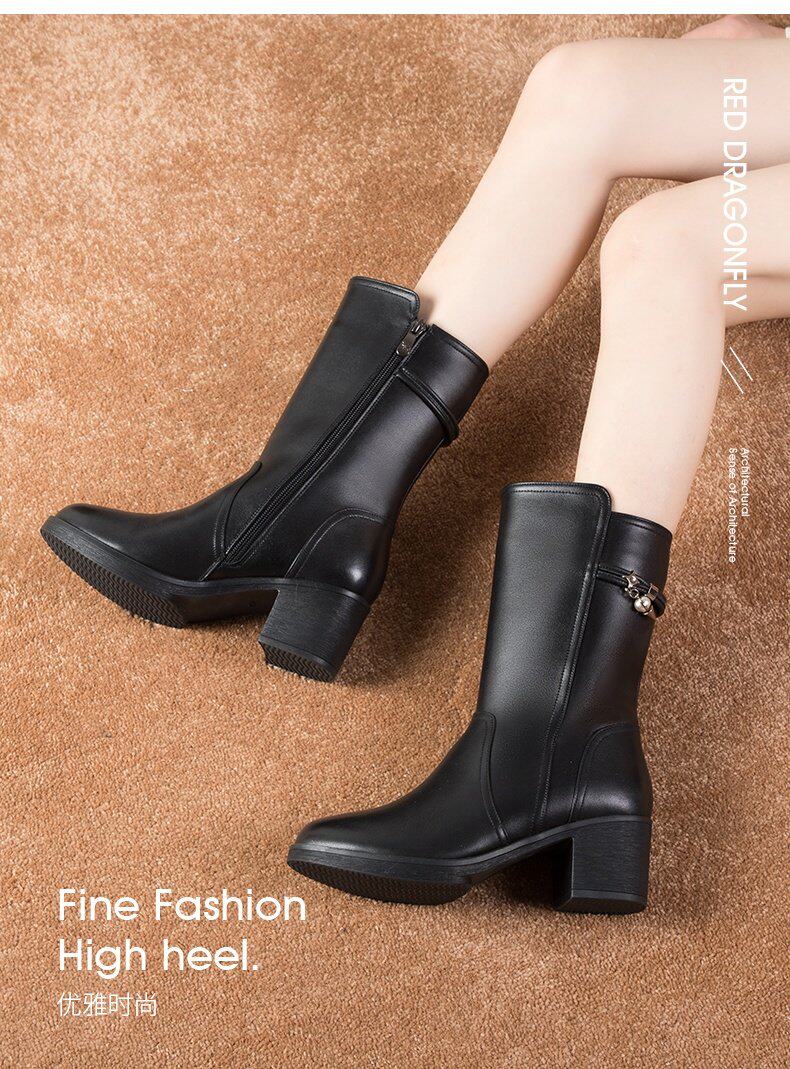 Демисезонные сапоги, высокие флисовые удерживающие тепло ботинки, 2021 года, из натуральной кожи, средней длины