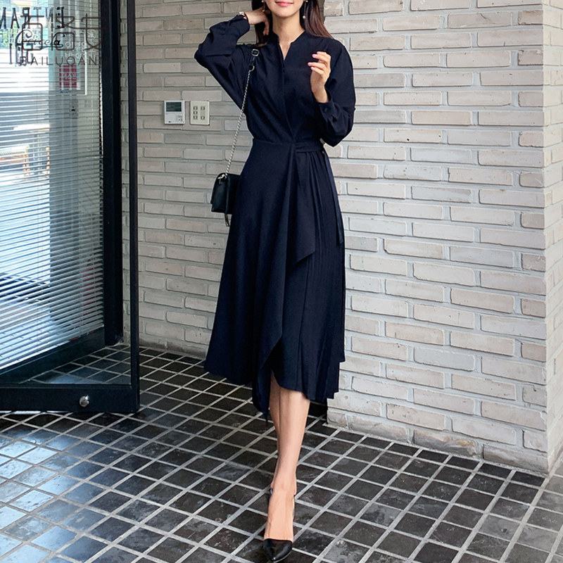 百洛安 Корсет, длинное весеннее платье, модная рубашка, юбка, длина миди, городской стиль