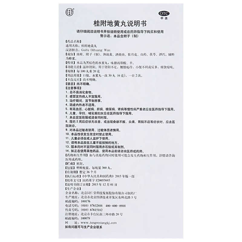 同仁堂 Gui fu dihuang wan 360 таблетки почек ян дефицит от прыщей в кашель с частотой мочи с частотой холодной мочи и лечение почек женского лечения.