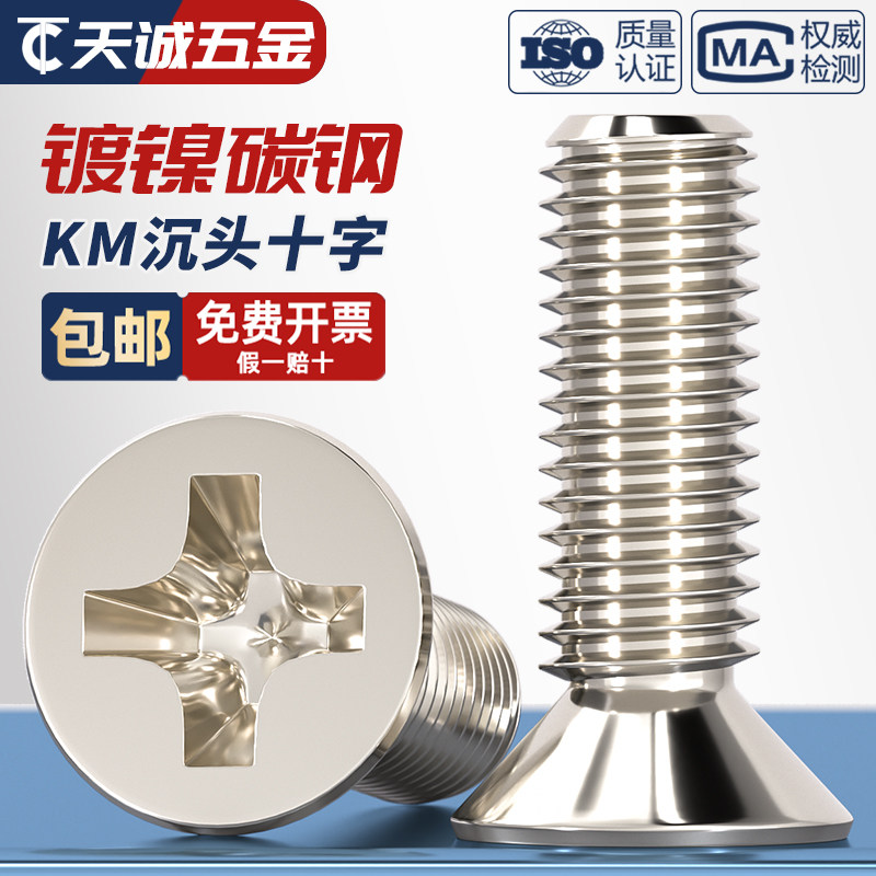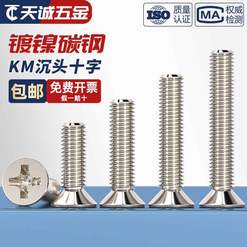 KM M1-M6 углеродистая сталь никелированная с перекрестной головкой винт с плоской головой M1.62,5m3m3.5m4m5mm