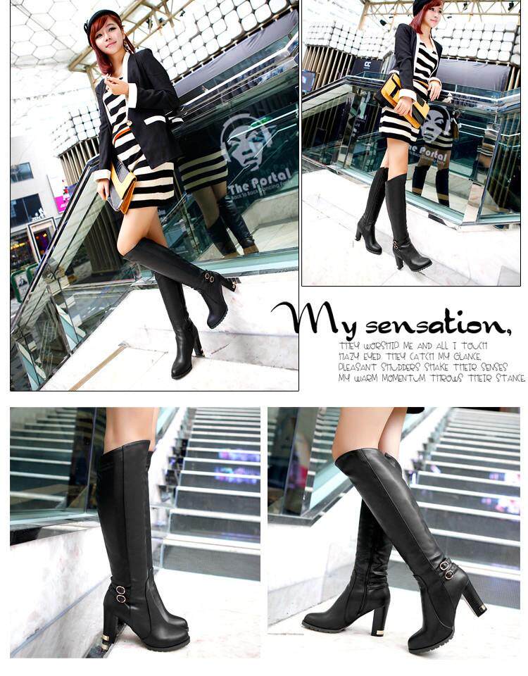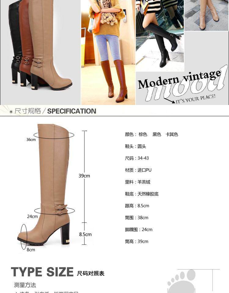 Демисезонные высокие сапоги, ботинки, ремень с молнией, пряжка, большой размер