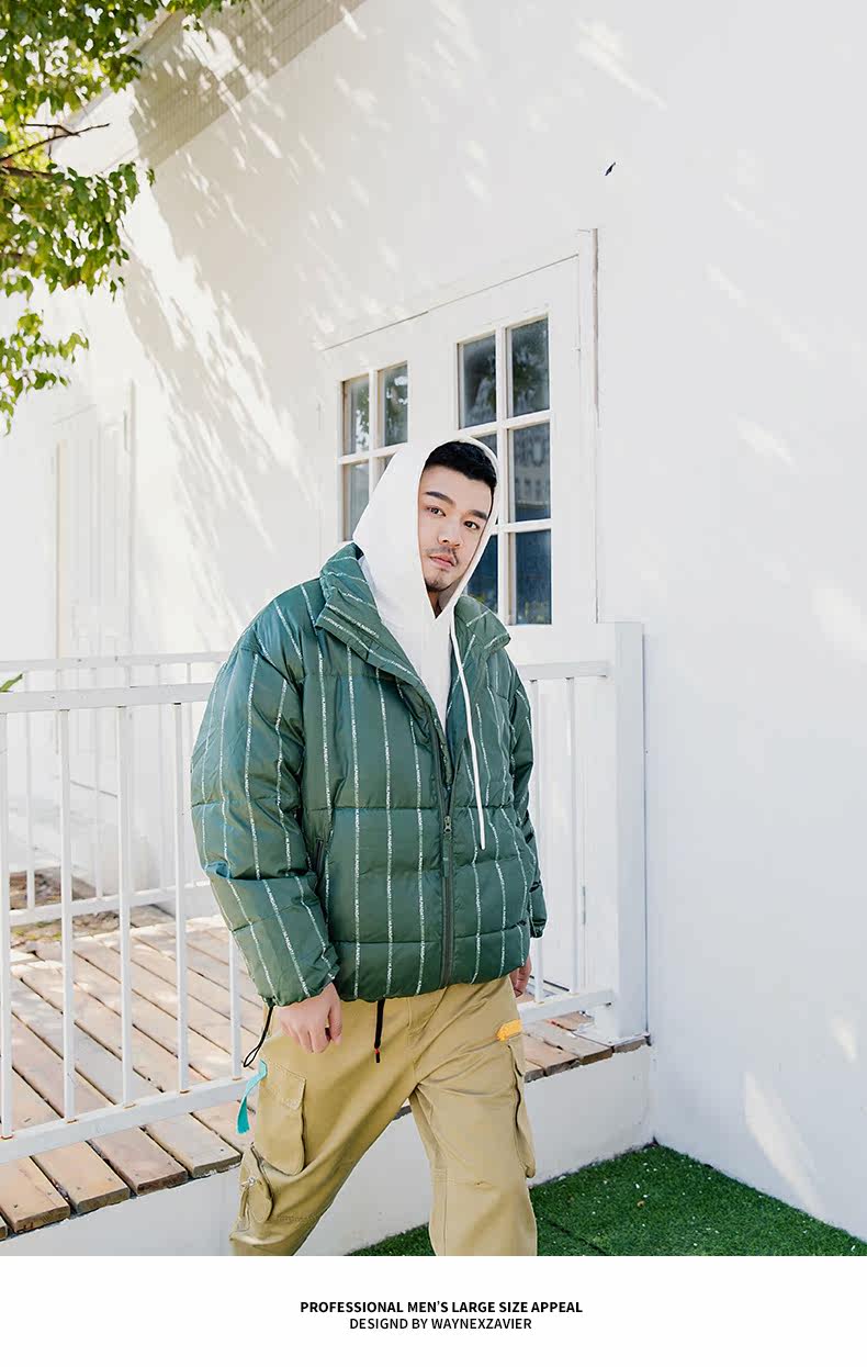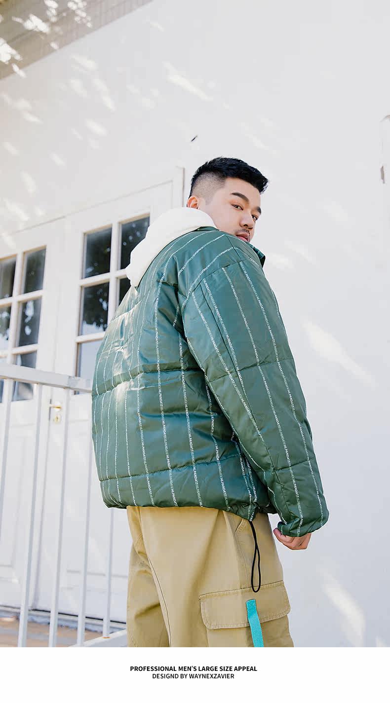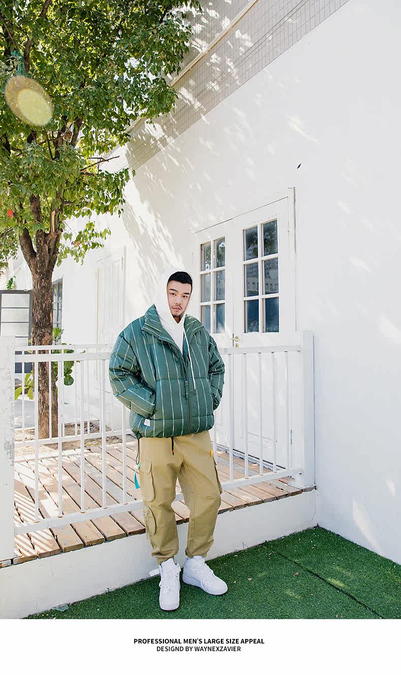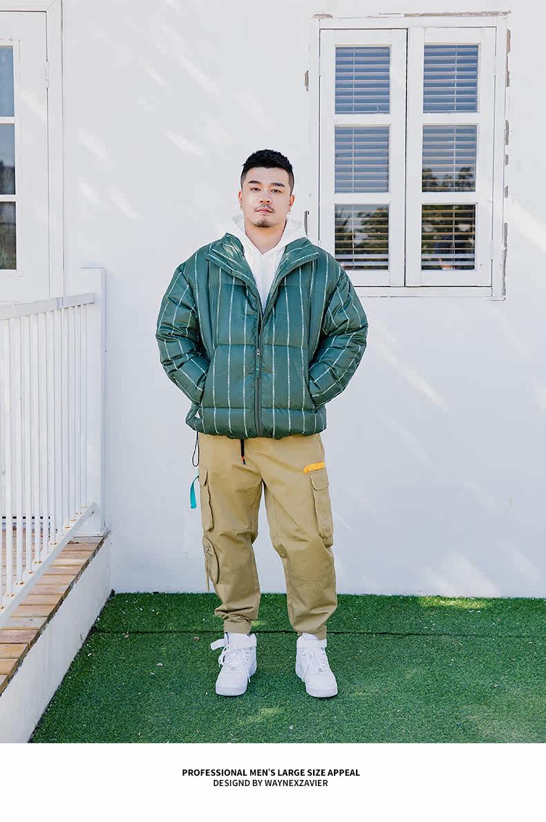 Wayne Xavier Большие размеры Мужская модная зимняя свободная деловая куртка-пуховик в полоску Спецодежда Хлебная куртка 6073