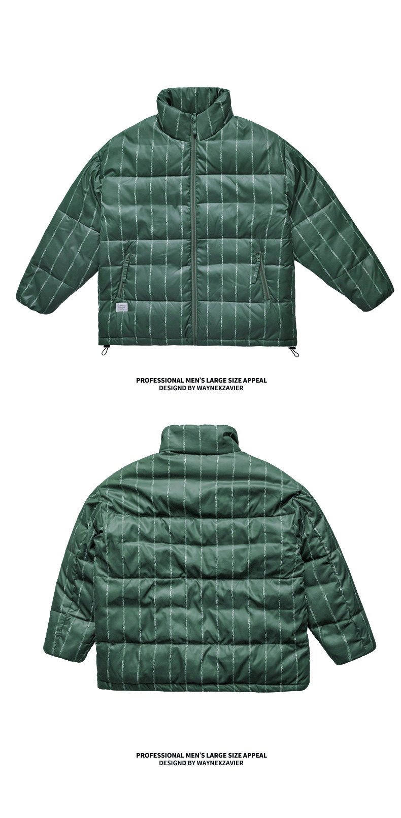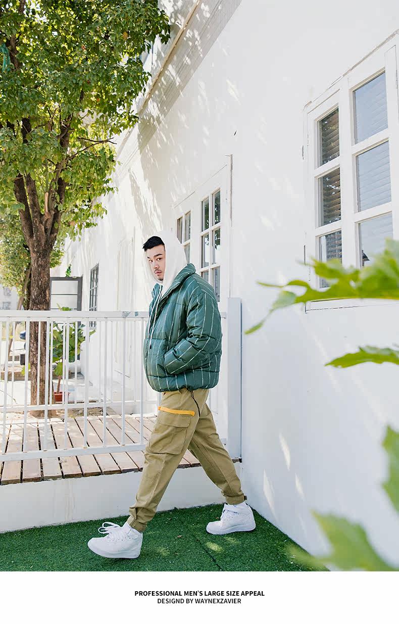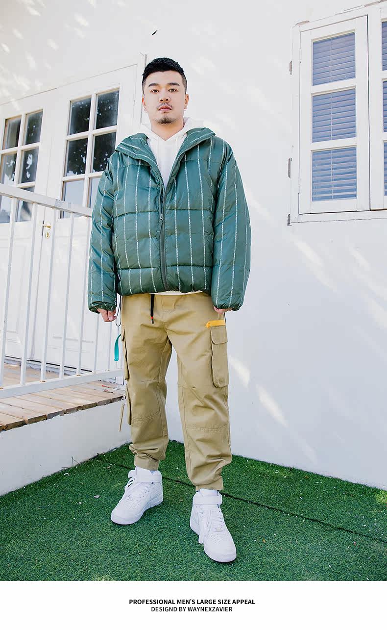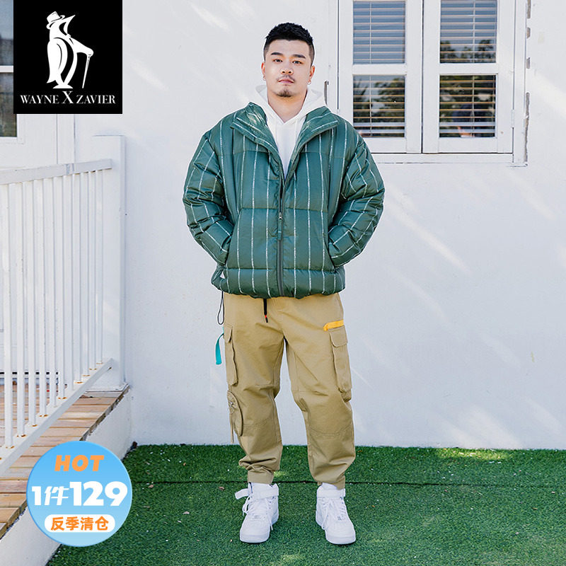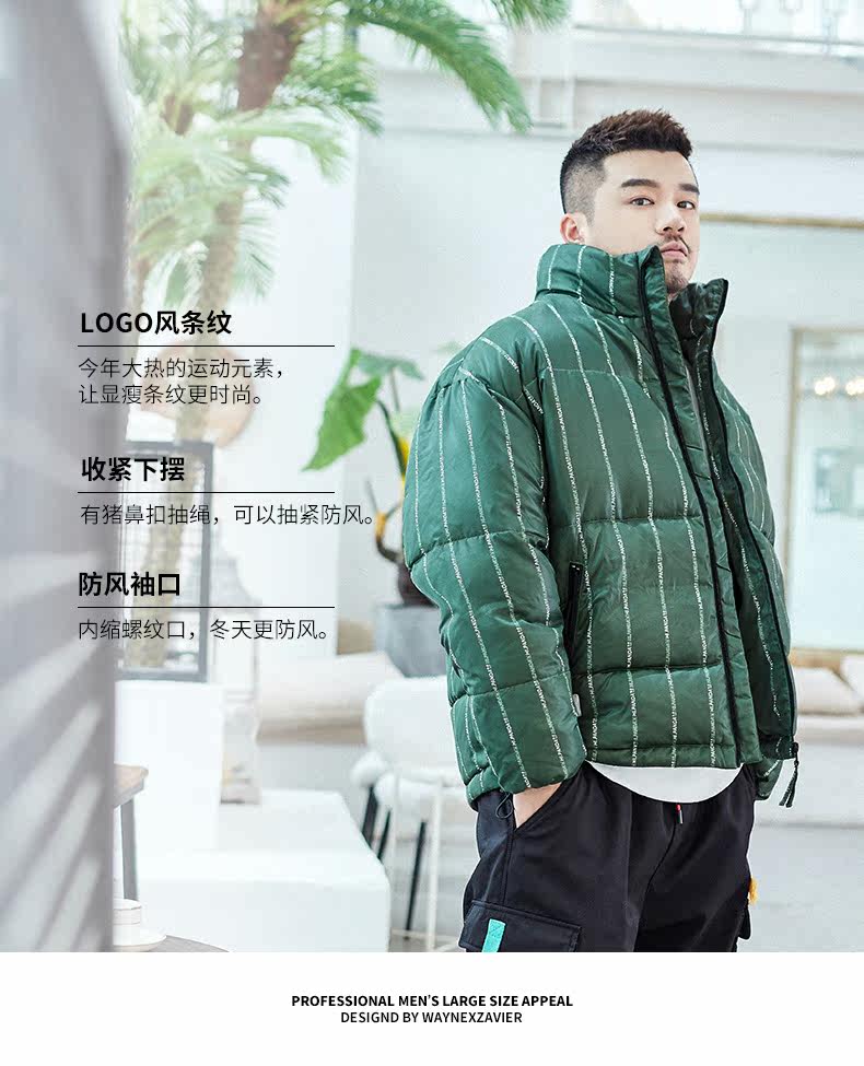 Wayne Xavier Большие размеры Мужская модная зимняя свободная деловая куртка-пуховик в полоску Спецодежда Хлебная куртка 6073