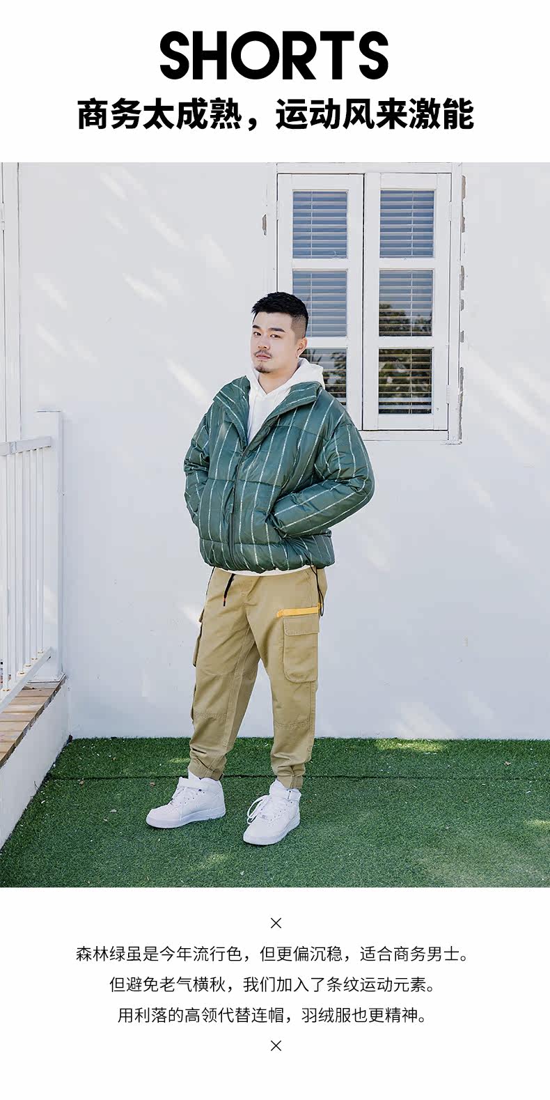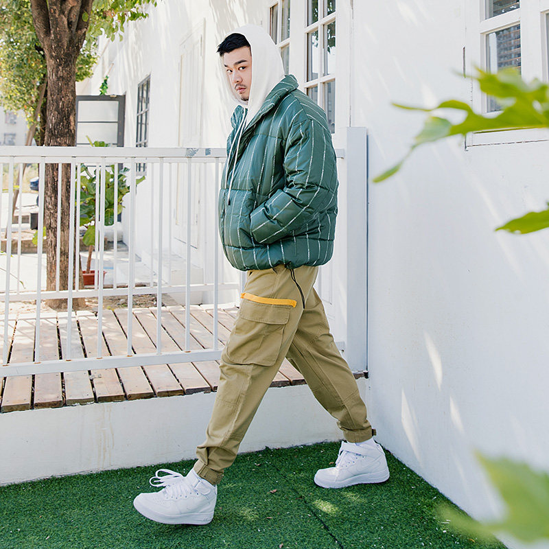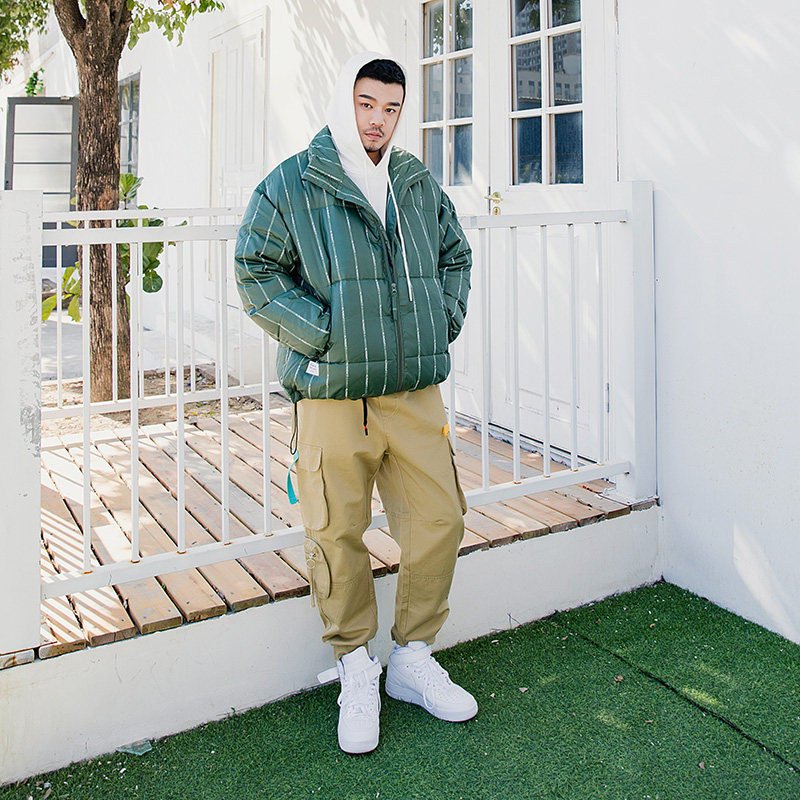 Технические характеристики Деловой пуховик в полоску комбинезон хлебное пальто