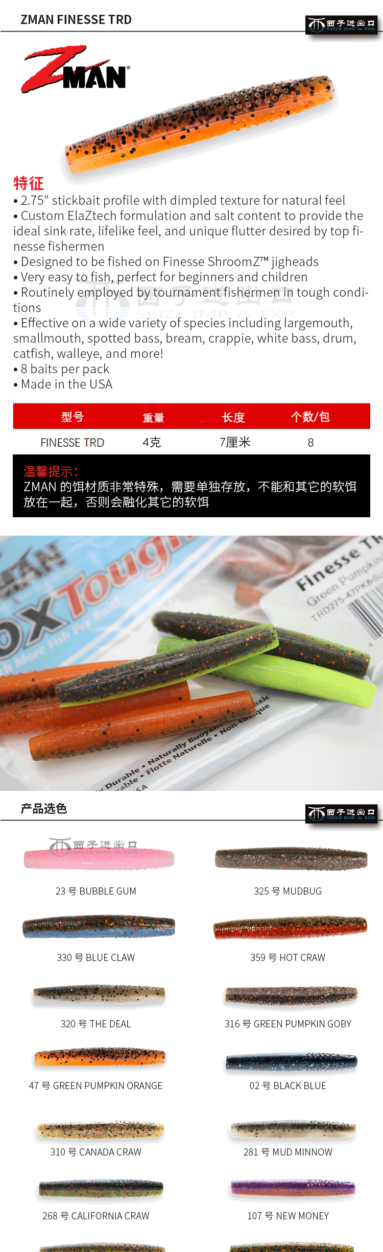 Американская Zman Stick Bug Finesse Trd Bugs Bugs, Texas.
