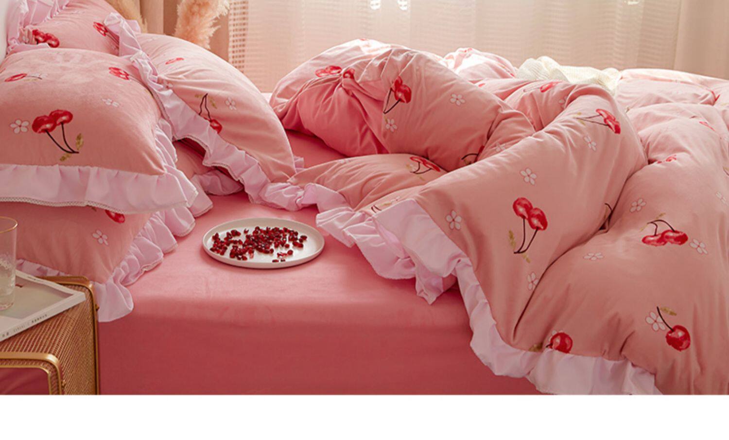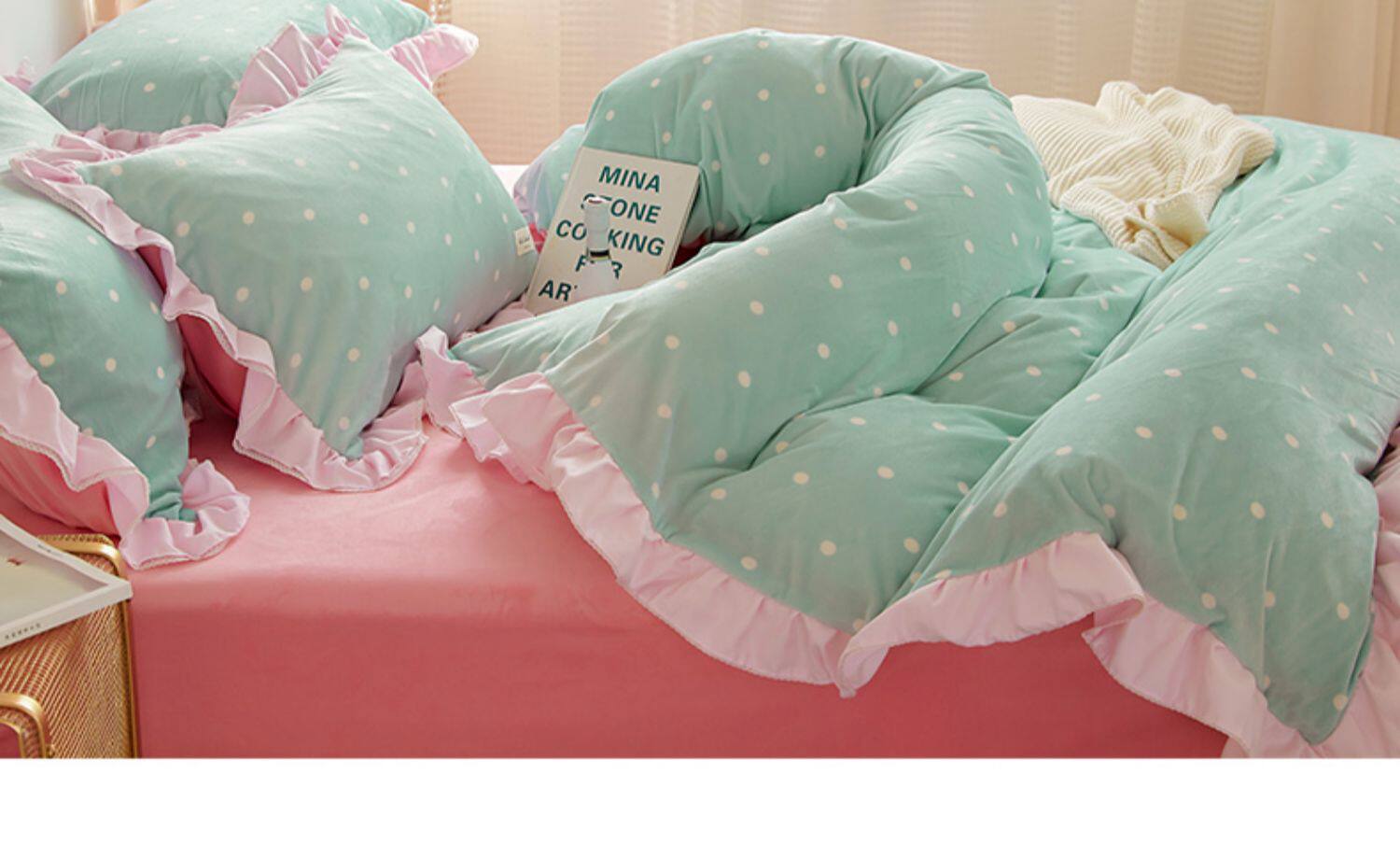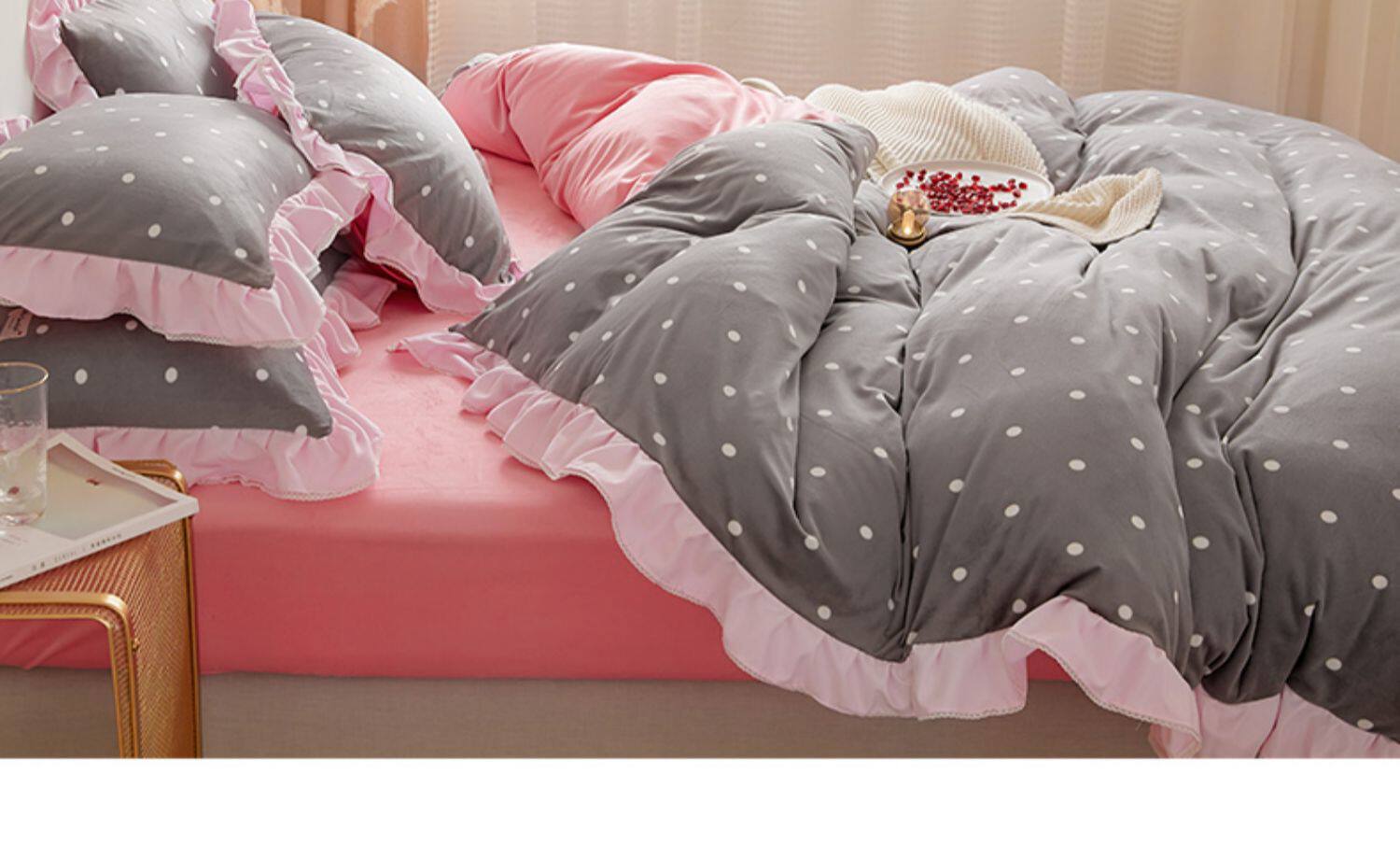 Коралловый комплект, двусторонний зимний пододеяльник, фланелевая простыня, увеличенная толщина, 4 предмета, 1.8м, 3 предмета