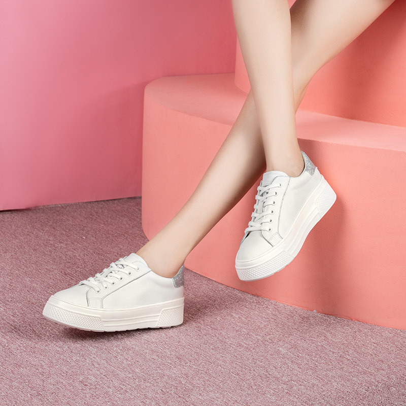 Белая обувь на платформе, универсальные кроссовки, коллекция 2021, осенняя, из натуральной кожи
