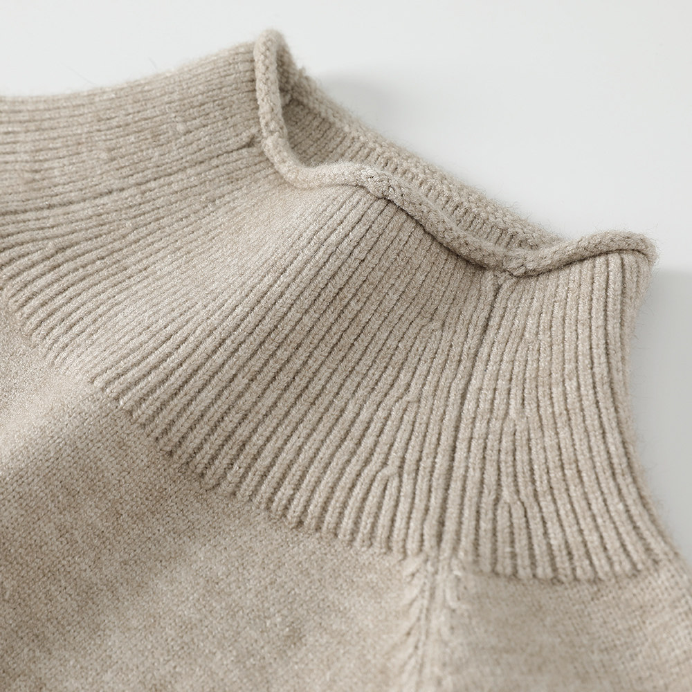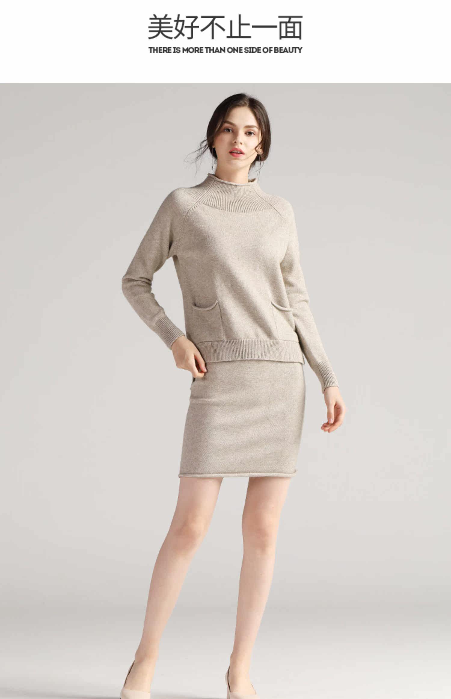 艾米恋 Черный осенний свитер, трикотажные джинсы с начесом, высокий воротник, ассиметричный крой