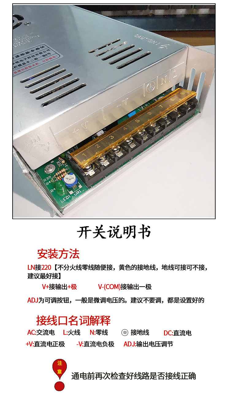 Блок питания, переключатель, монитор, светящийся фотогальванический трансформатор, 24v, 48v, 220v, 12v
