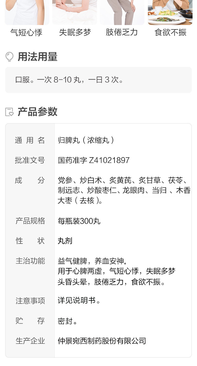 Таблетки Zhongjing Guipi (концентрированные таблетки) 300 таблетки Insomnia, Dreaming, Qi, Heart Sleen, Sleen, Sleen и Sleep, питательница и успокаивает.