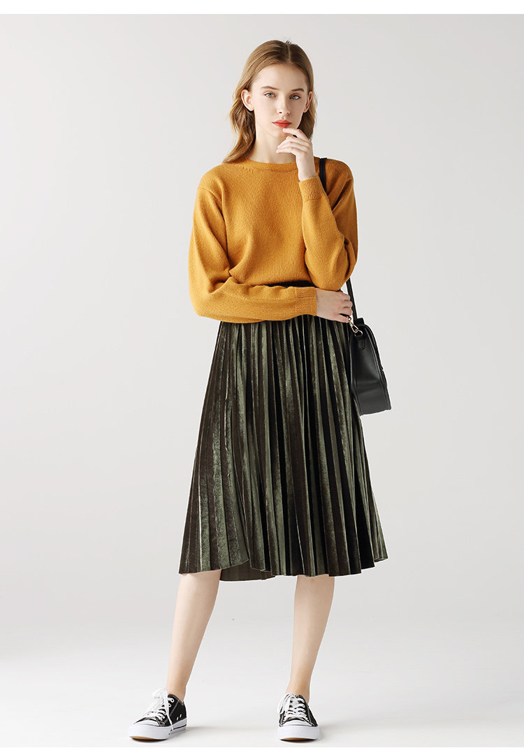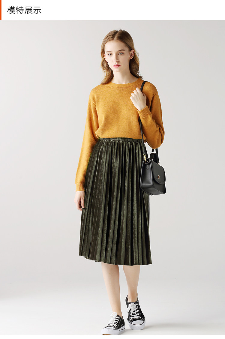 艾米恋 Бархатная демисезонная юбка в складку, длинный орган, высокая талия, длина миди, длина макси, эластичная талия