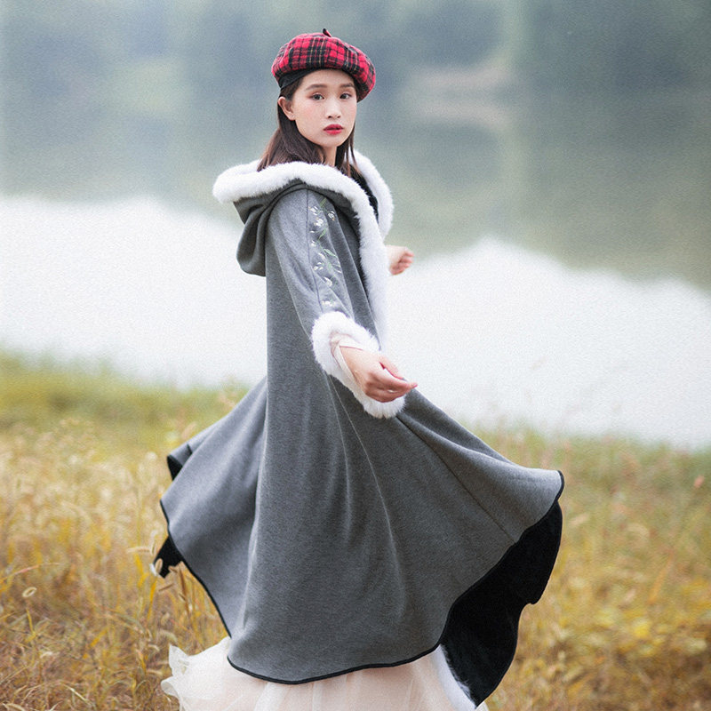 Демисезонный ретро удерживающий тепло плащ с капюшоном, 2023