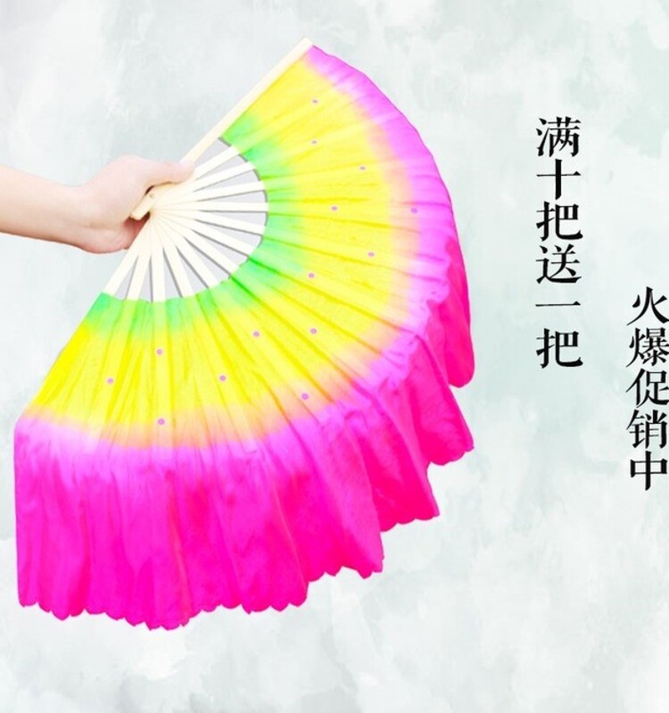 Фан -фанат танцев Янге с удлиненным вентилятором китайский ветер с двойным фанатом Янге Трехэтапный фанат танцев с градиентом