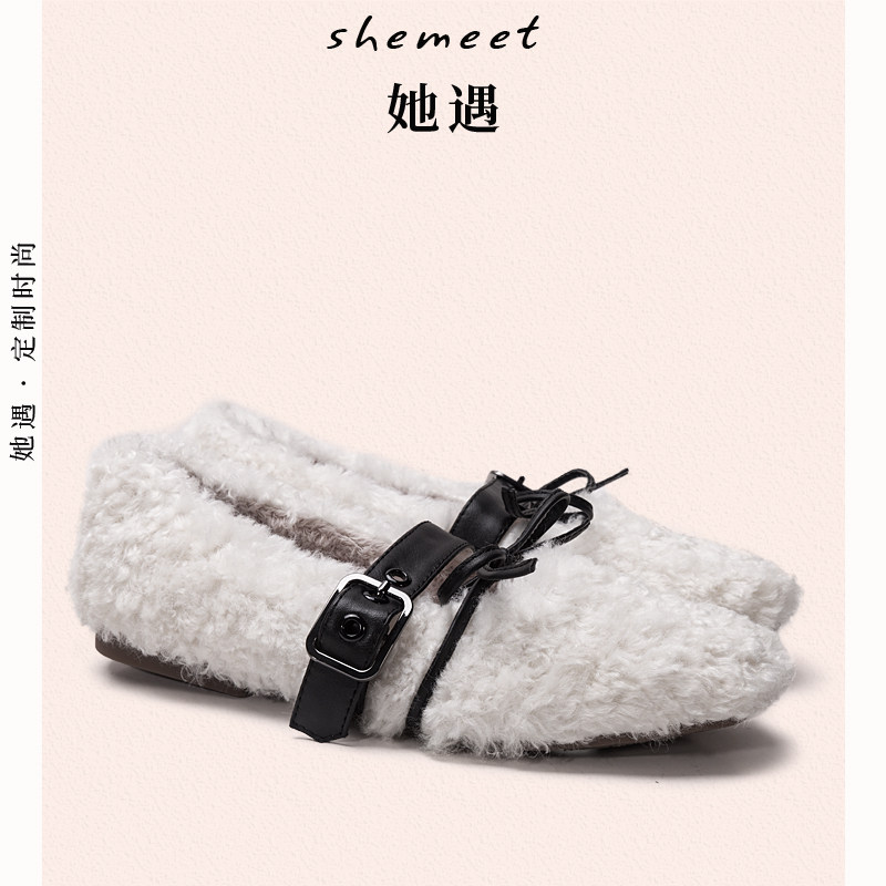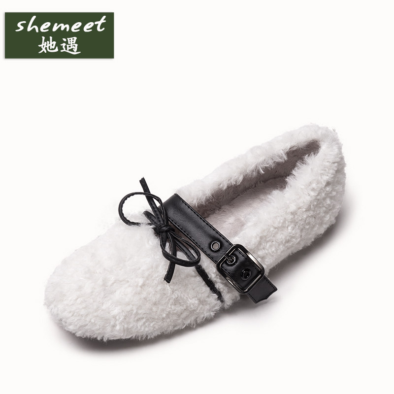 Меховые туфли интернет-знаменитостей для женщин 2021 года, осень и зима, новый стиль, модная верхняя одежда, универсальные хлопковые туфли с плоской подошвой и бархатные женские шапочки на шнуровке