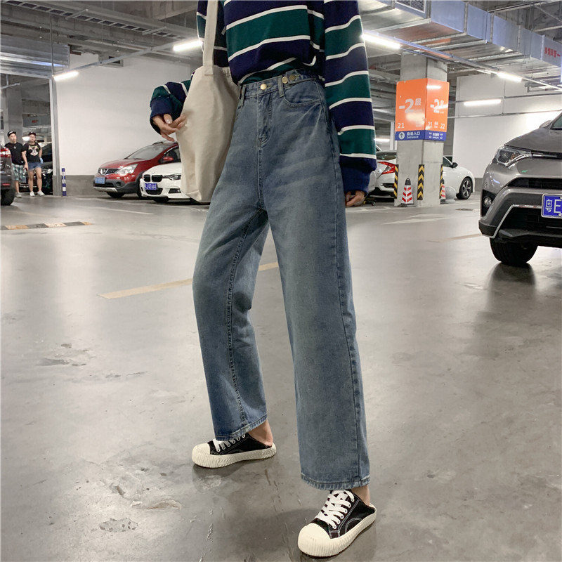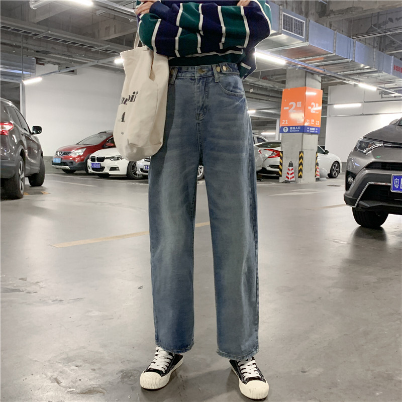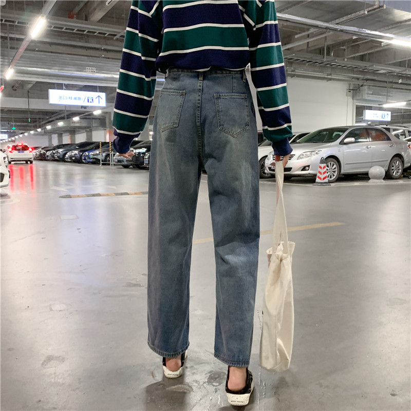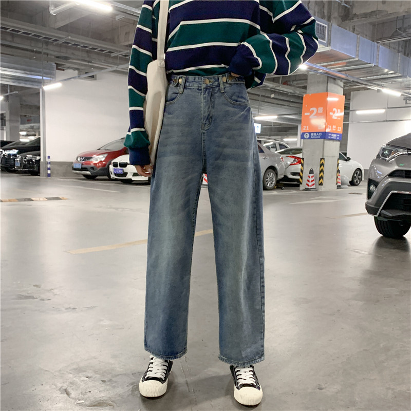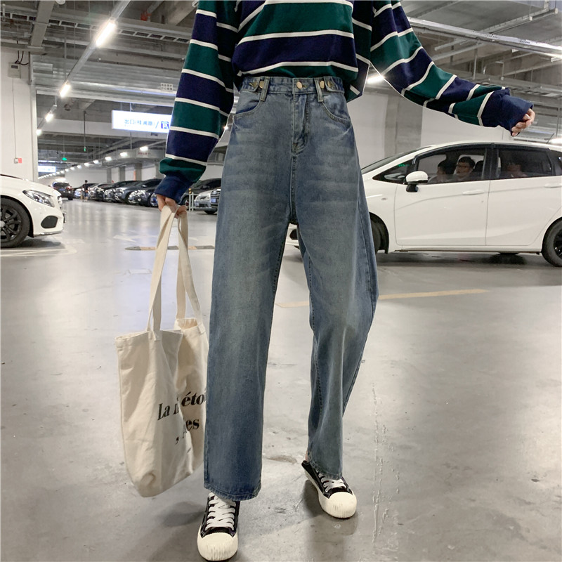 Ретро штаны, джинсы, высокая талия, свободный прямой крой, большой размер, подходит для полных девушек
