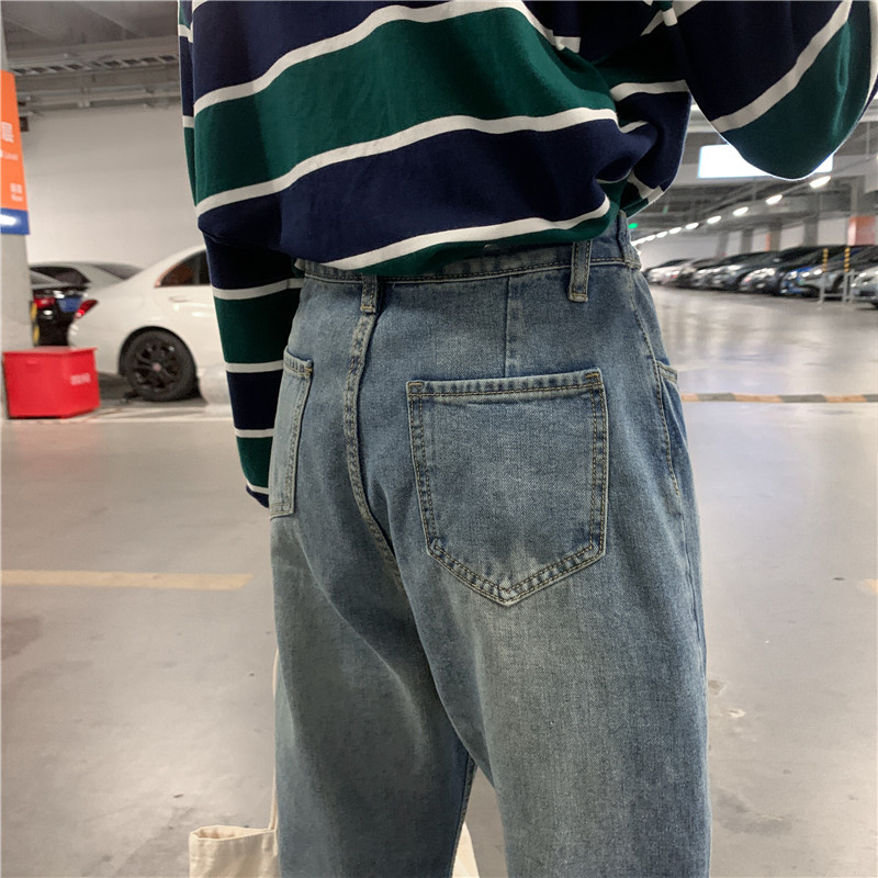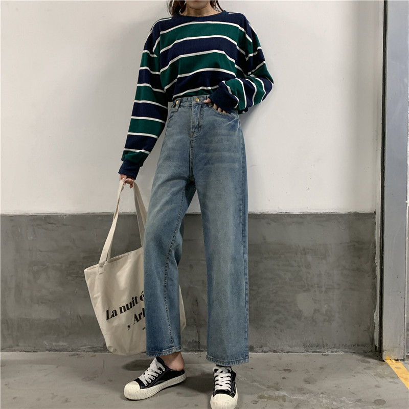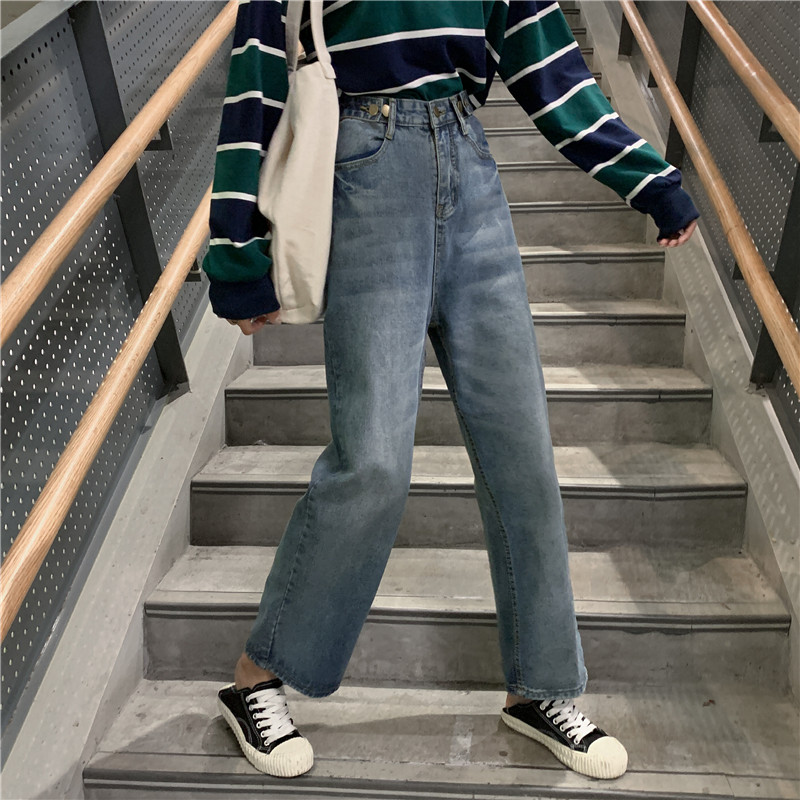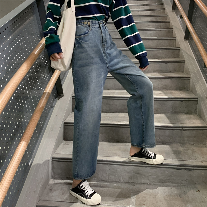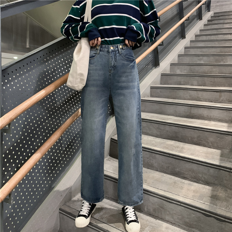 Ретро штаны, джинсы, высокая талия, свободный прямой крой, большой размер, подходит для полных девушек