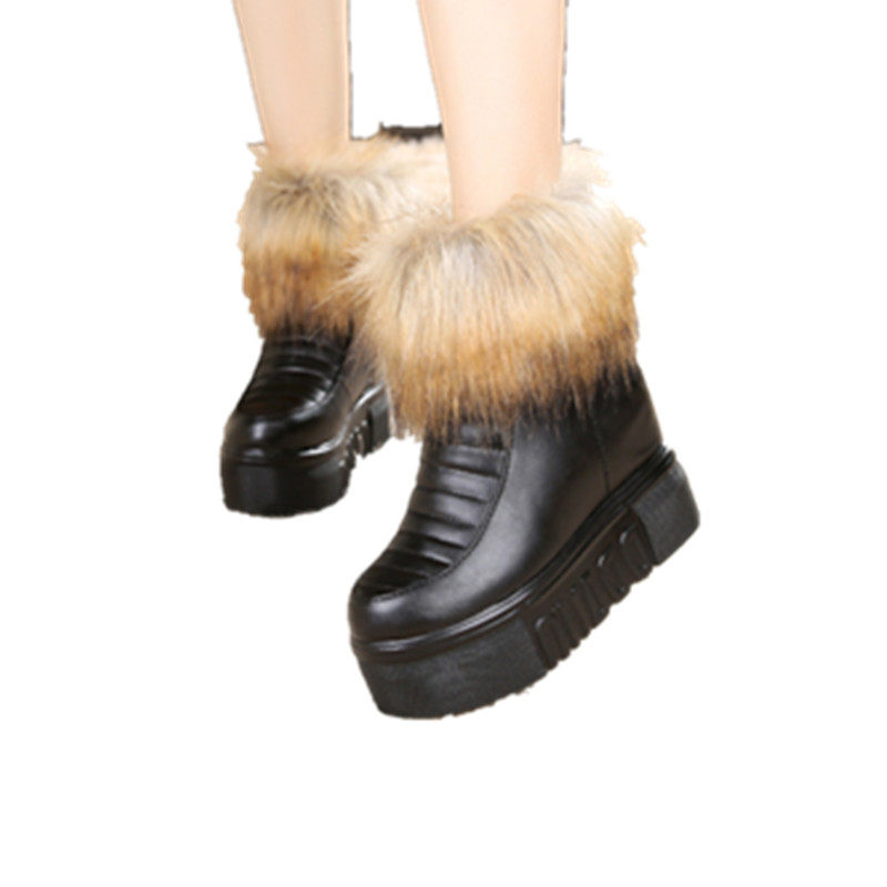 Зимние шерстяные хлопчатобумажные ботинки на танкетке, модные и универсальные, в корейском стиле, плюс бархатные теплые зимние ботинки, нескользящая толстая подошва, короткие ботинки с внутренней отделкой.