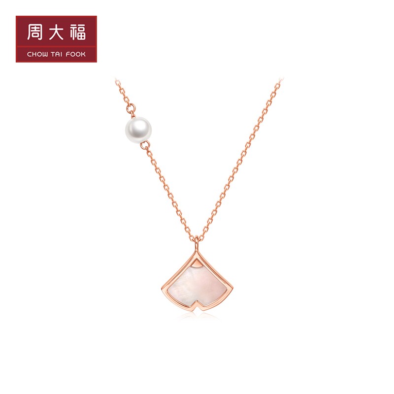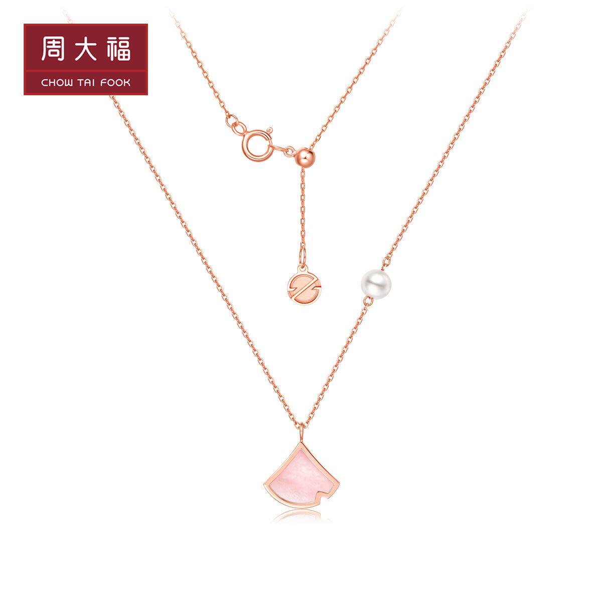 周大福 Наряд маленькой принцессы, жемчужная пудра, ожерелье, подвеска, золото 750 пробы