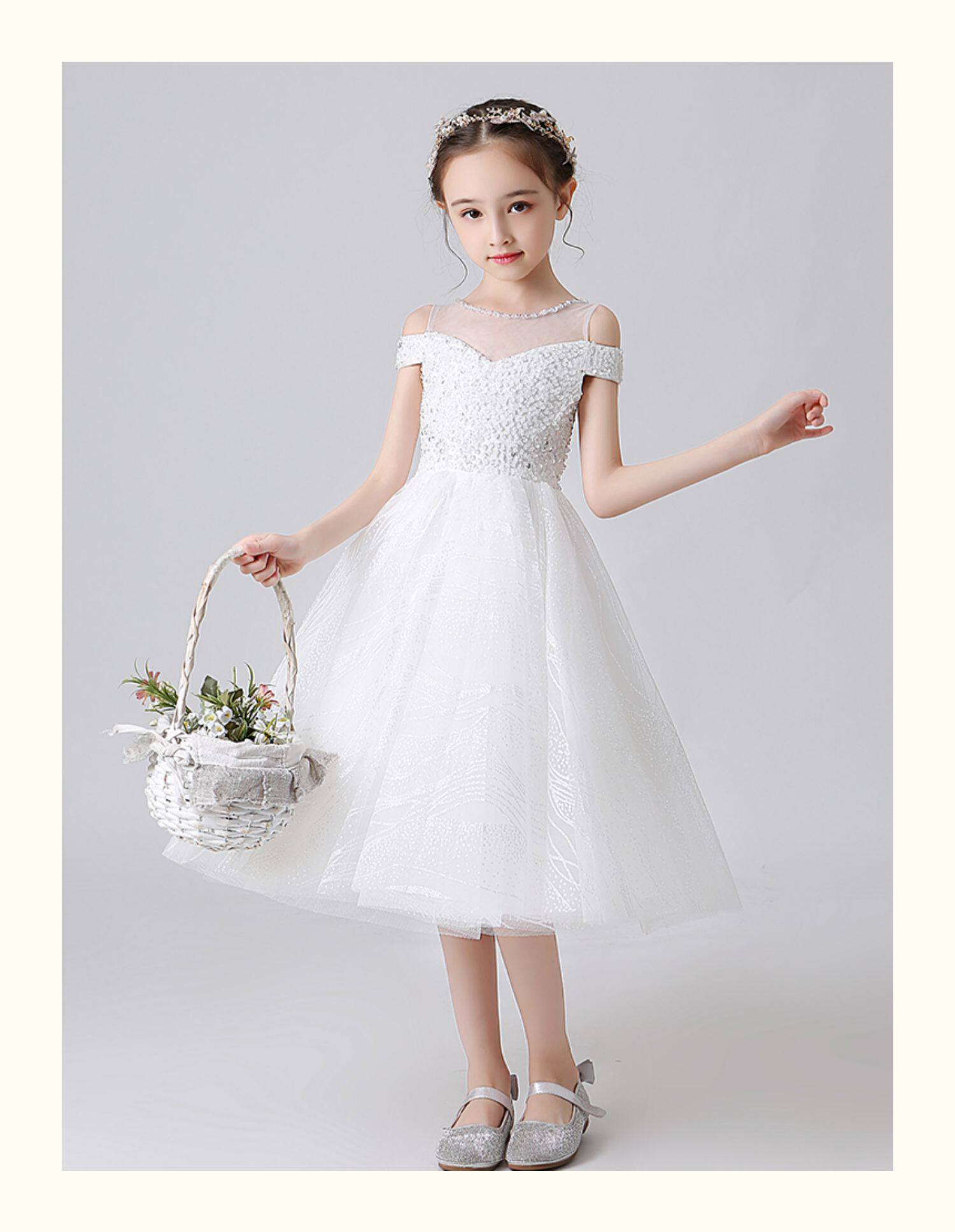 Детское белое летнее свадебное платье, наряд маленькой принцессы, вечернее платье, подарок на день рождения
