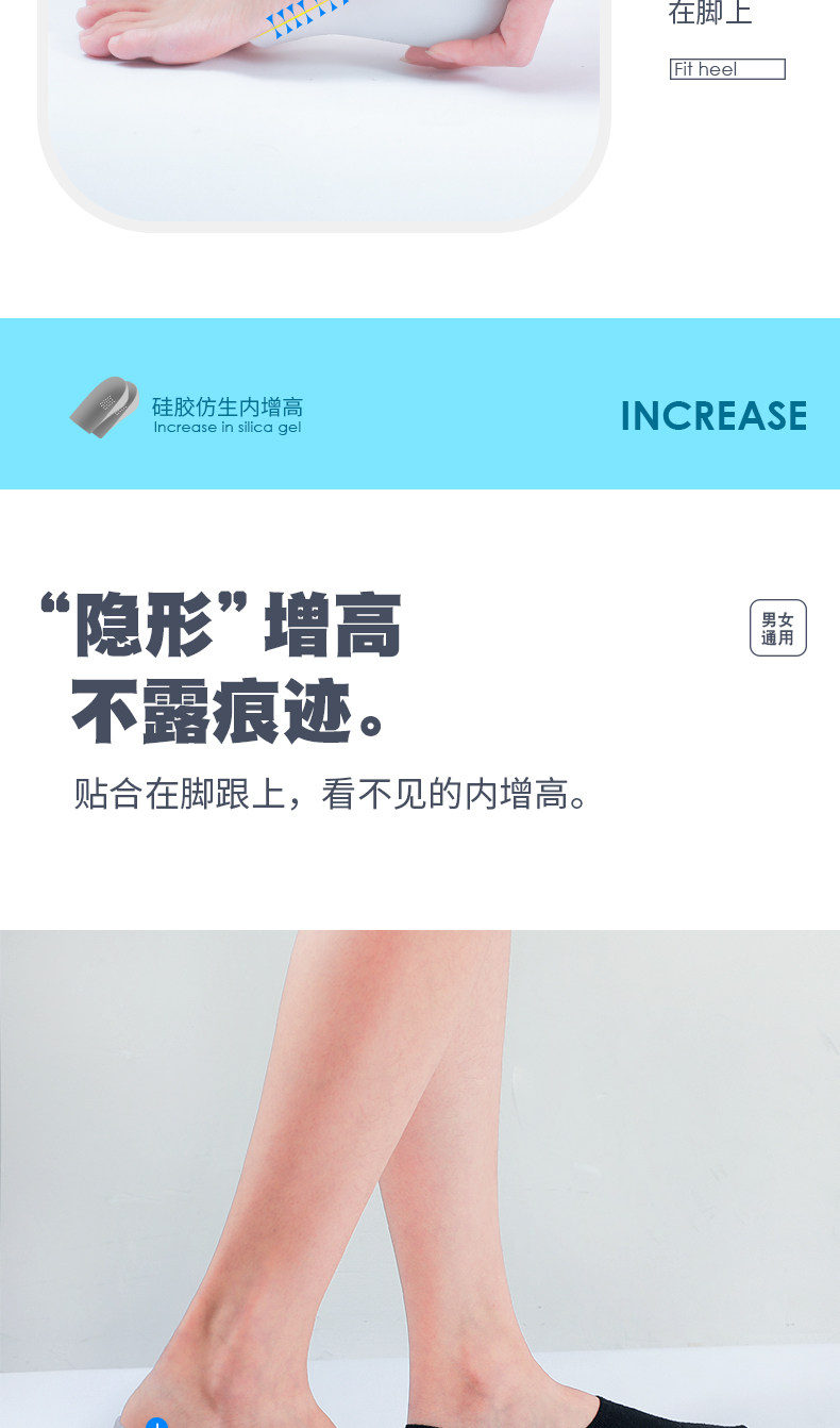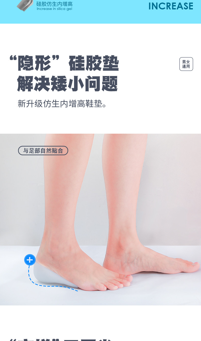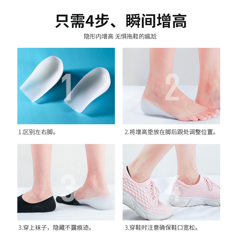 Невидимые стельки для увеличения роста подходит для мужчин и женщин, силиконовые комфортные нескользящие напяточники