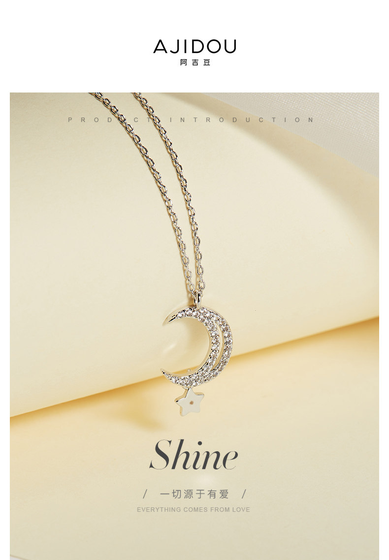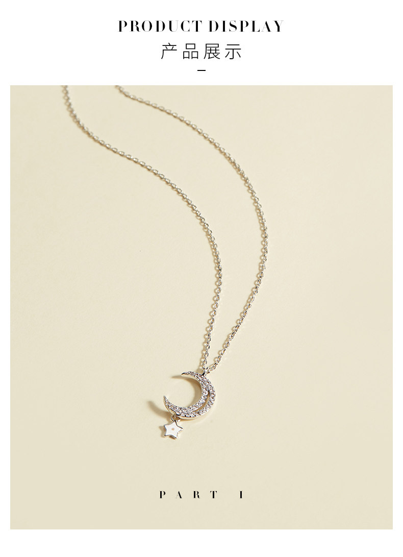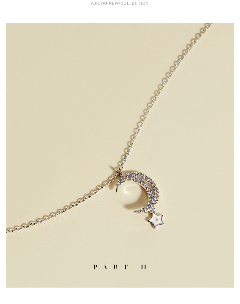 Луна, ожерелье с цирконом, подвеска, цепочка, серебро 925 пробы
