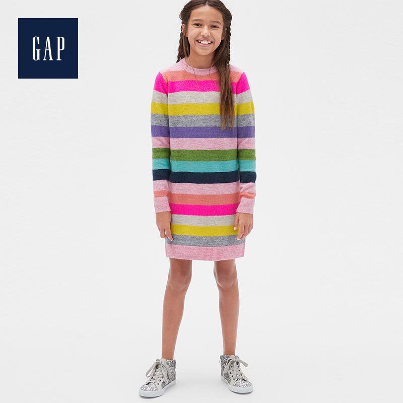 Gap Детское длинное трикотажное платье с круглым воротником, средней длины