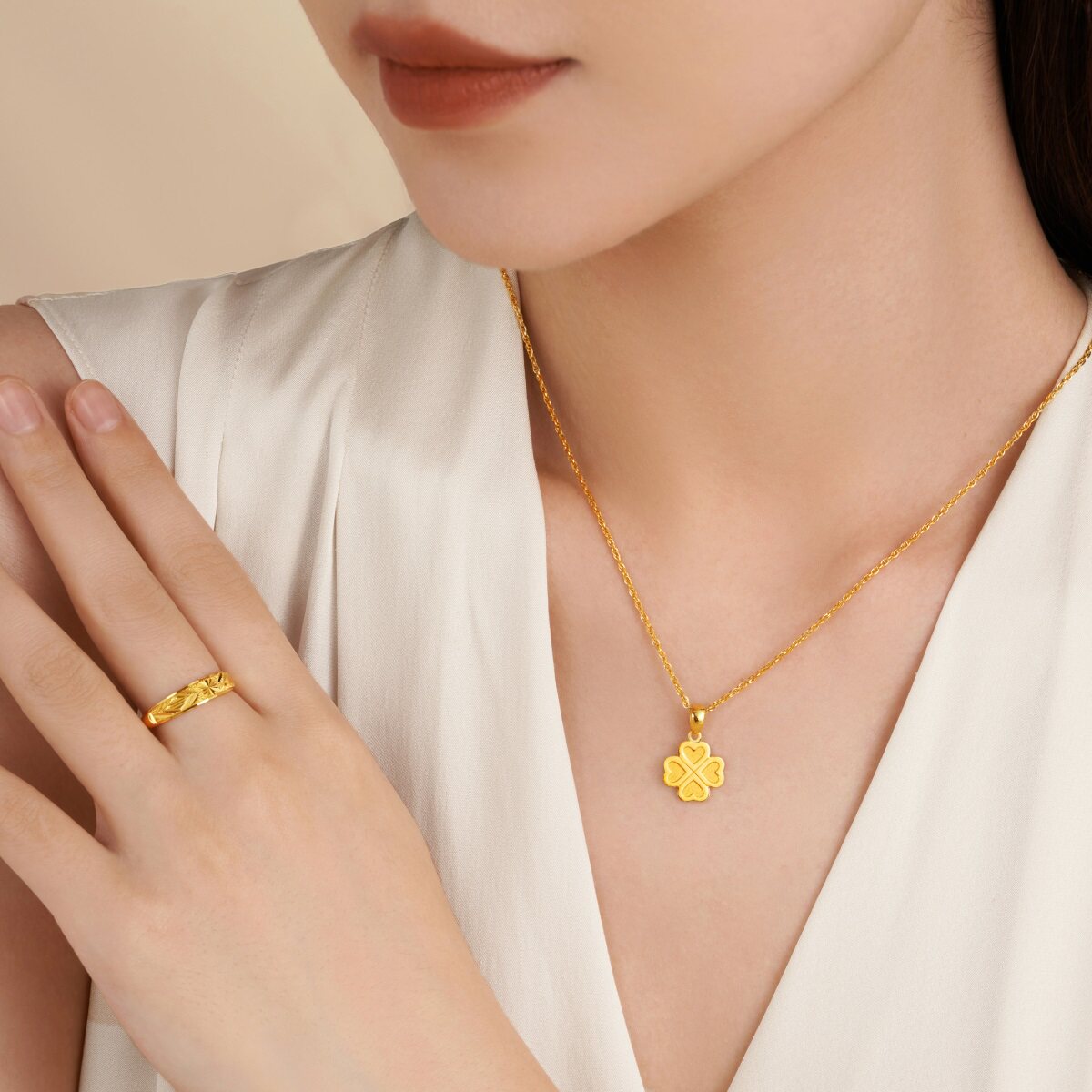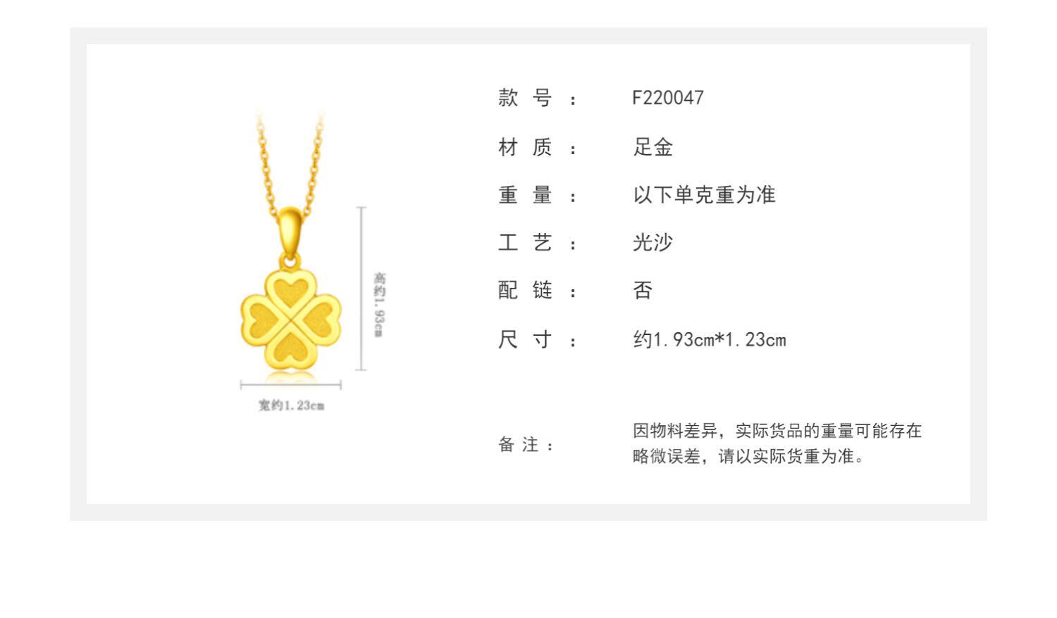周大福 Золотой счастливый клевер, подвеска