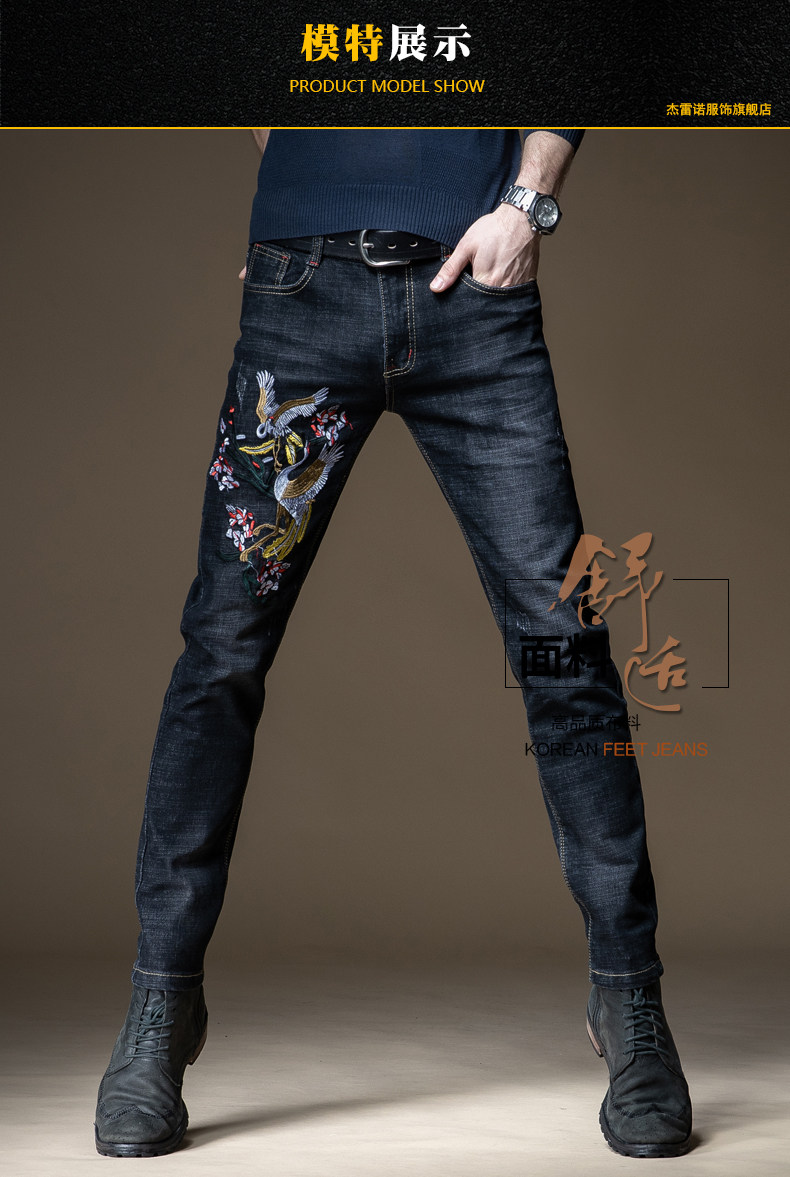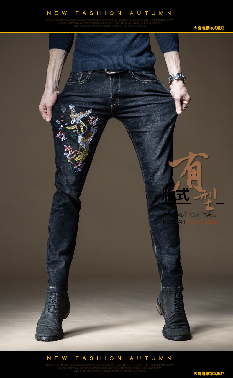 Демисезонные джинсы, эластичные трендовые штаны, с вышивкой