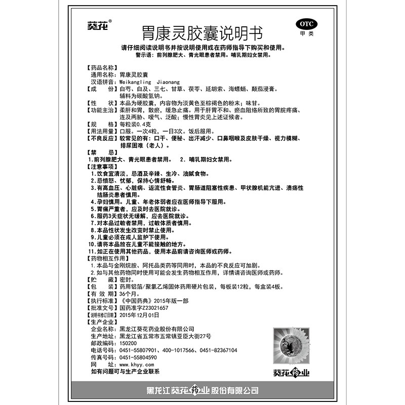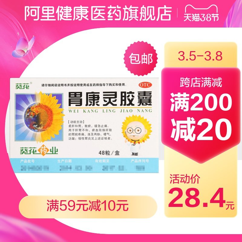 葵花 Желудок Кан Кан Лин Капсула 48 Желудочно -кишечная боль в желудке кислота вздутие живота