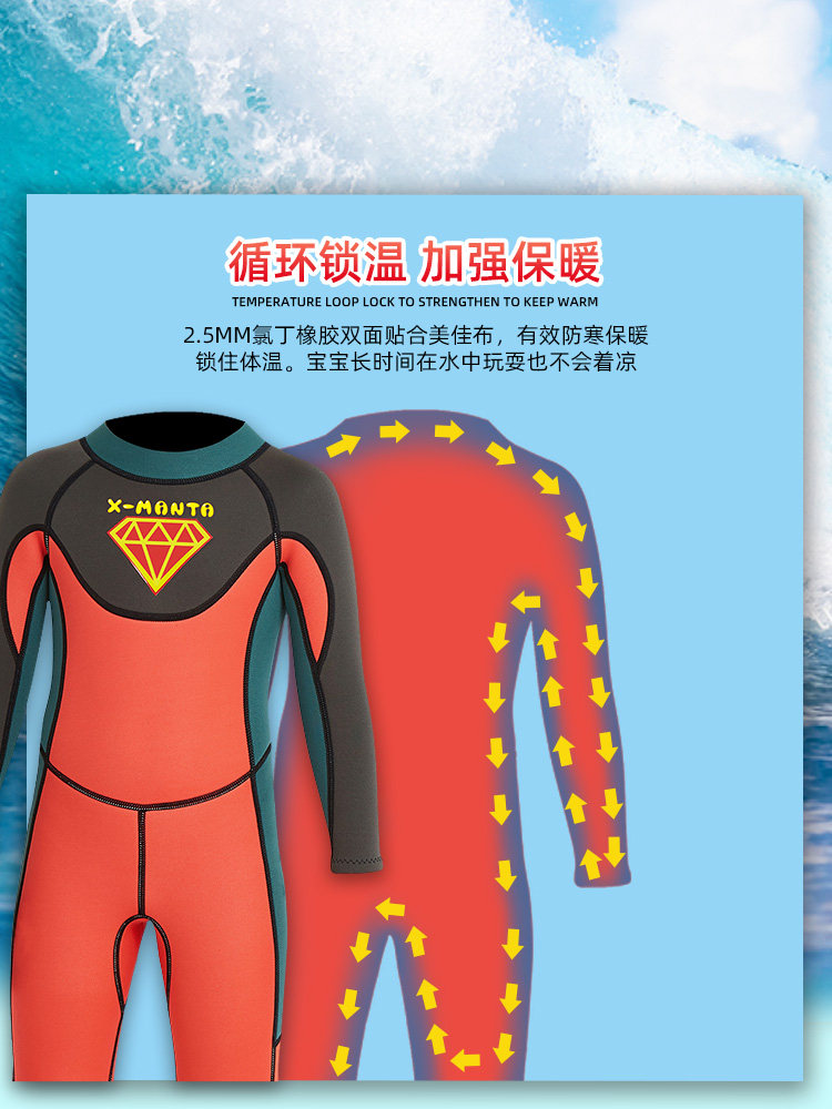 Детский лонгслив, удерживающий тепло водонепроницаемый купальник, 2.5mm