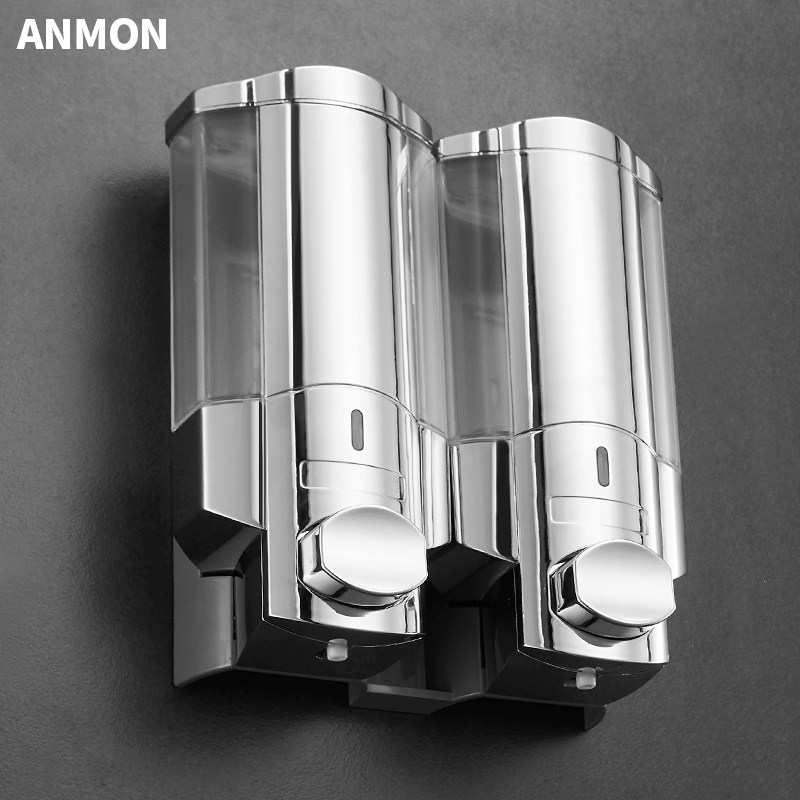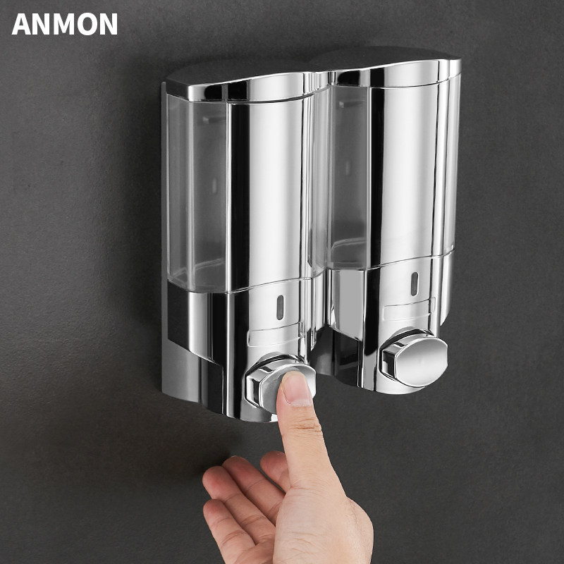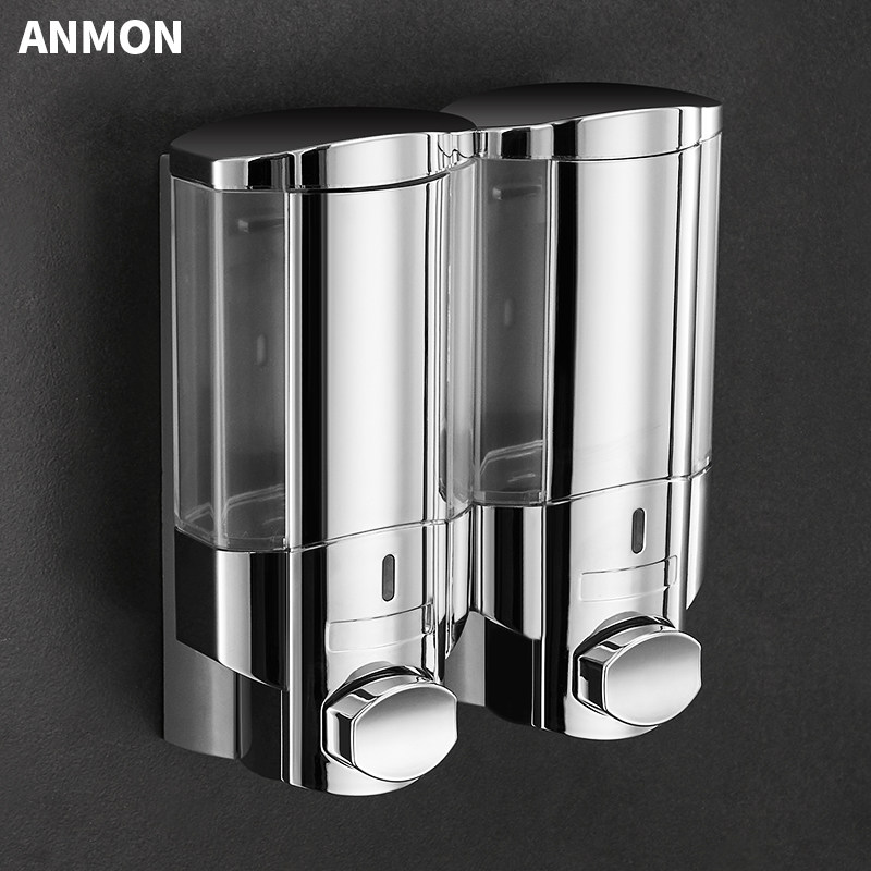 Руководство для отеля в ванной комнате с двойным голодом с мыломи отель на стенах -гель -геле для душевого геля, чтобы нажать на бутылку