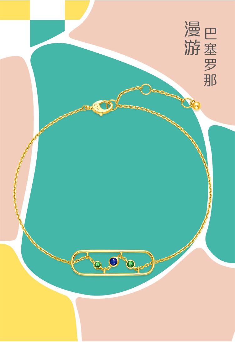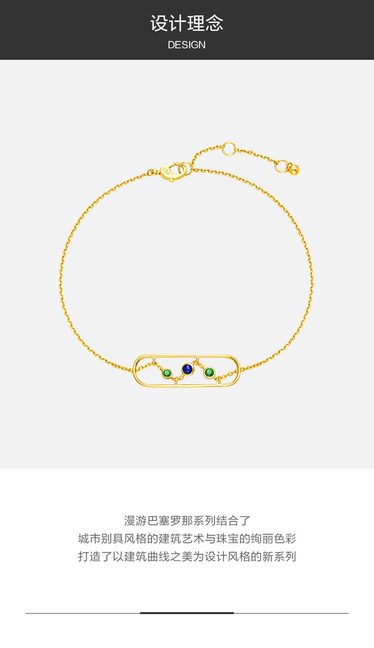 周大福 Barcelona Series Fashion 18K Golden Gold Garnet Bracelet v114711 Подарки