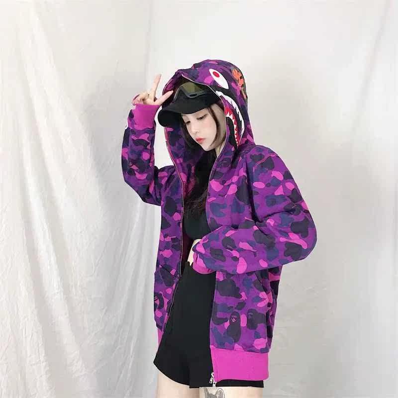Брендовая ретро камуфляжная акула с капюшоном, тонкая толстовка для школьников и студентов, куртка подходит для мужчин и женщин, Южная Корея, свободный крой